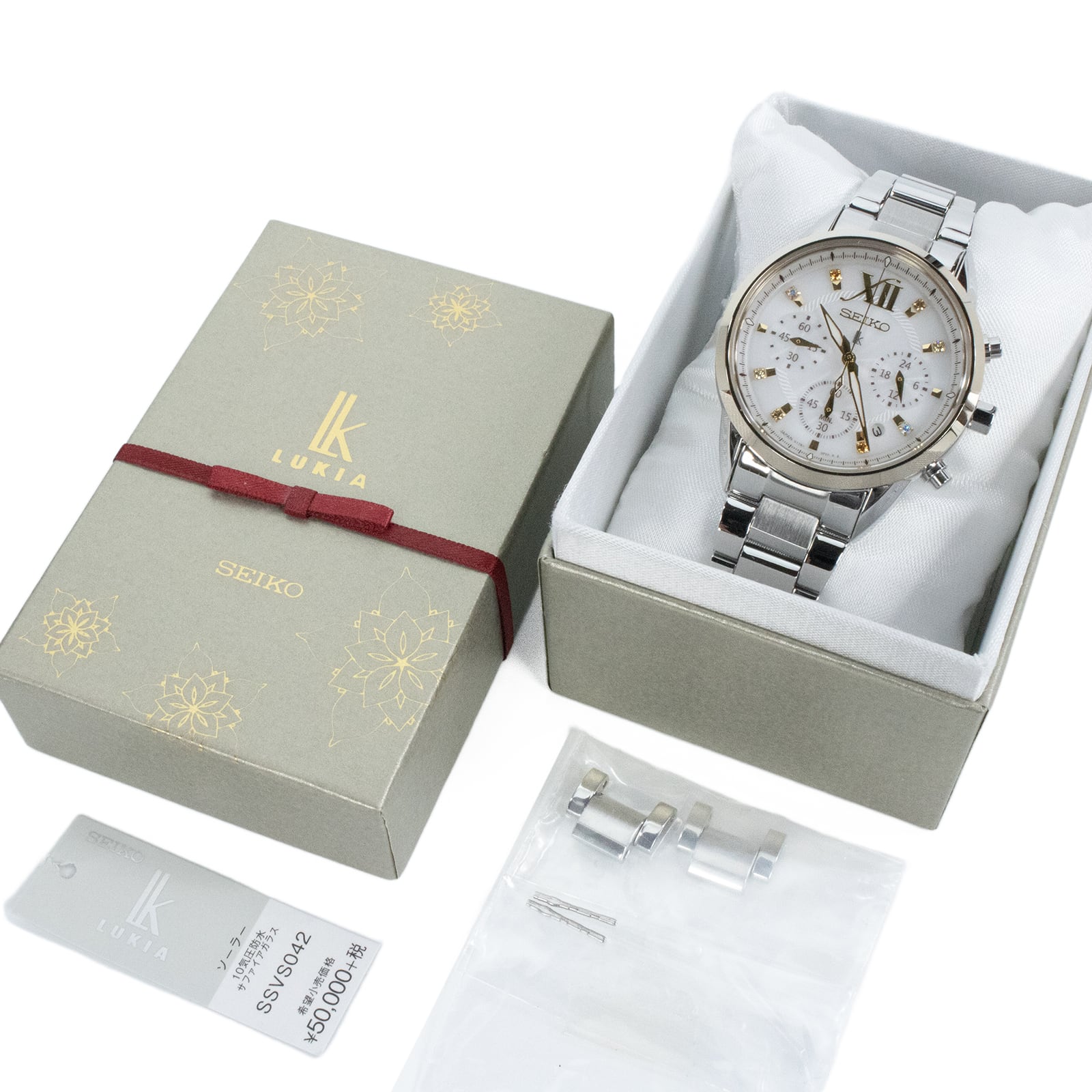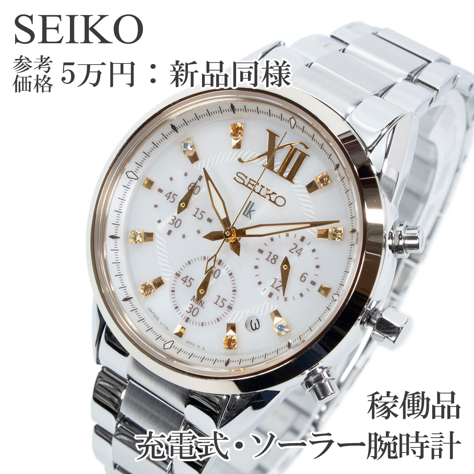 稼働品 新品同様 送料無料 セイコー 腕時計 ソーラー レディース 2019年クリスマス1000本限定 ルキア V175-0EW0 白 ゴールド かわいい X546