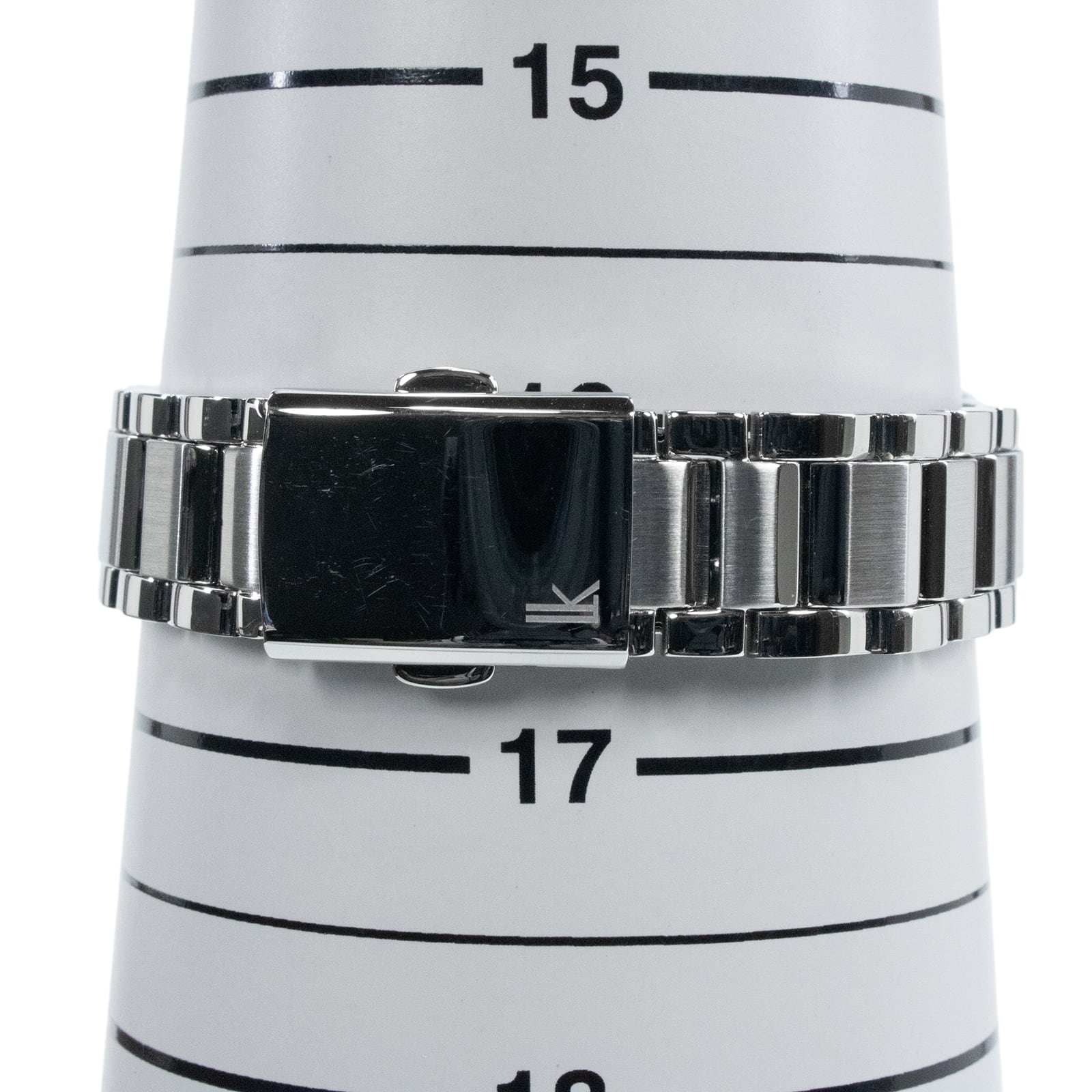 インデックスに輝くクリスタルが、知的なシルバーベルトの中でひときわ美しいアクセントをもたらしております。