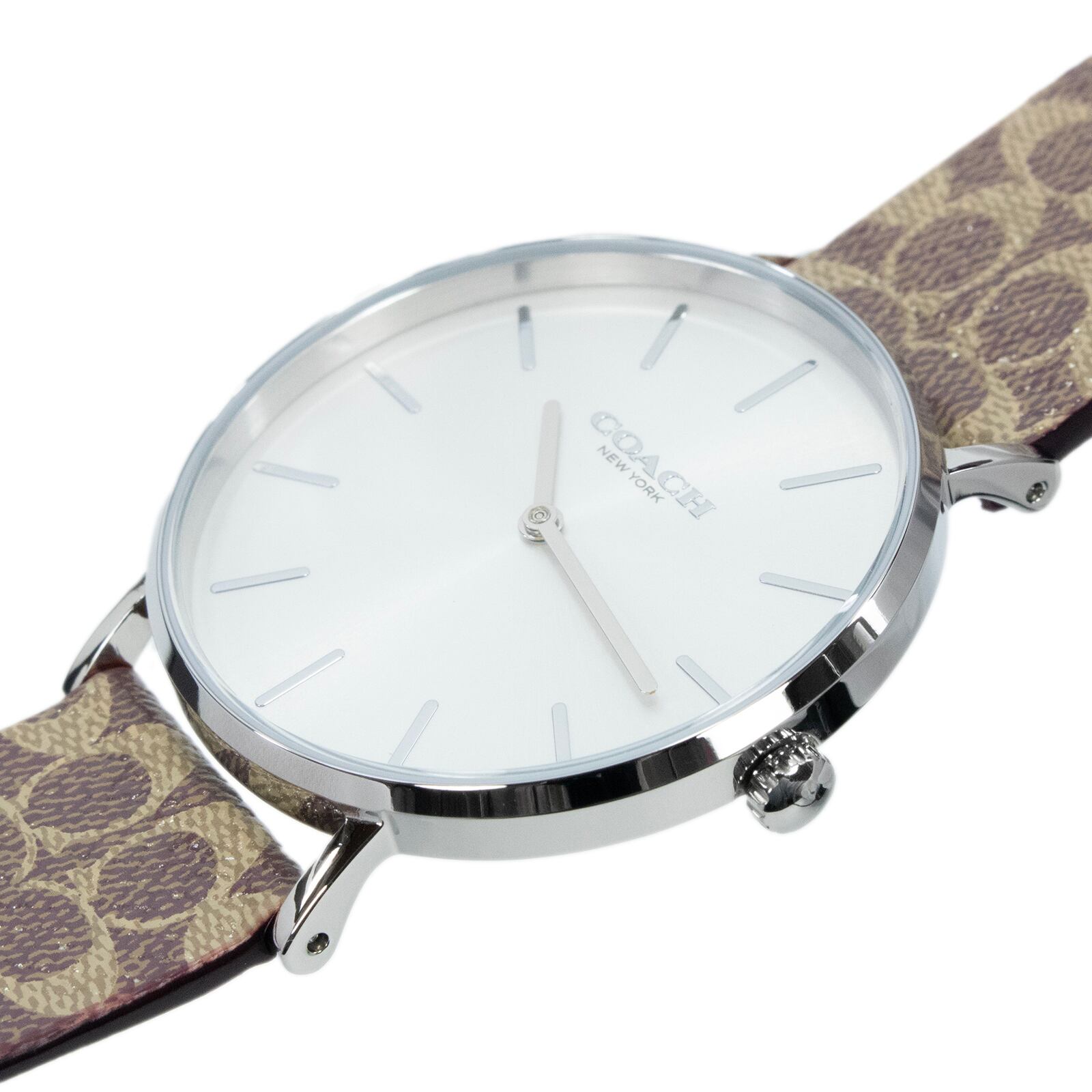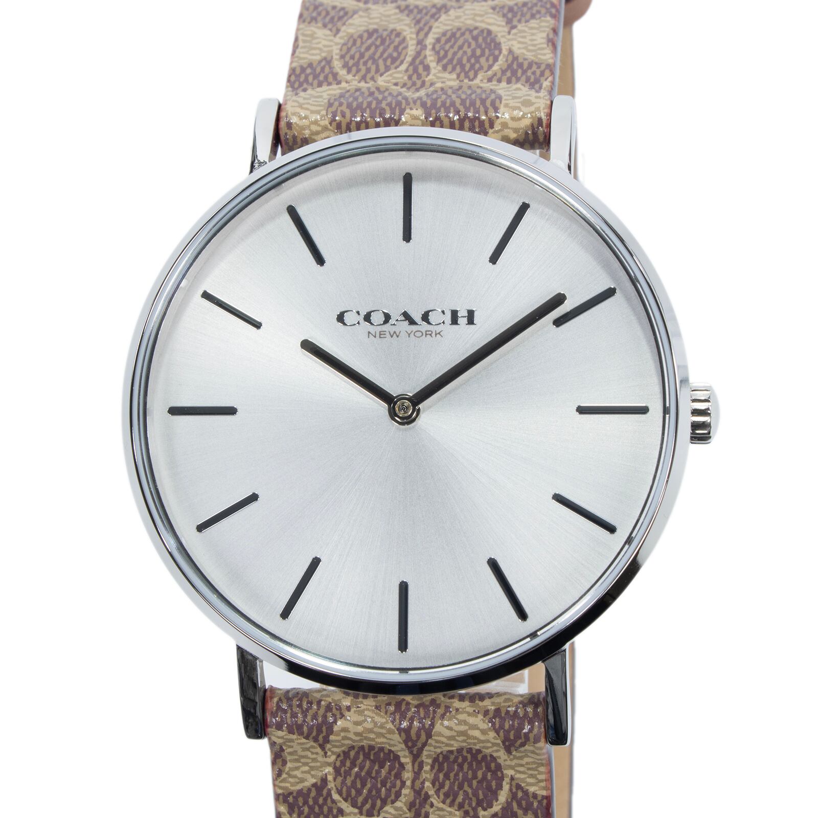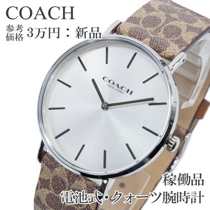 稼働品 新品 送料無料 コーチ 腕時計 クォーツ 2針 レディース ペリー シルバー 茶色 ブラウン シグネチャー シンプル ロゴ 軽量 綺麗 Z017