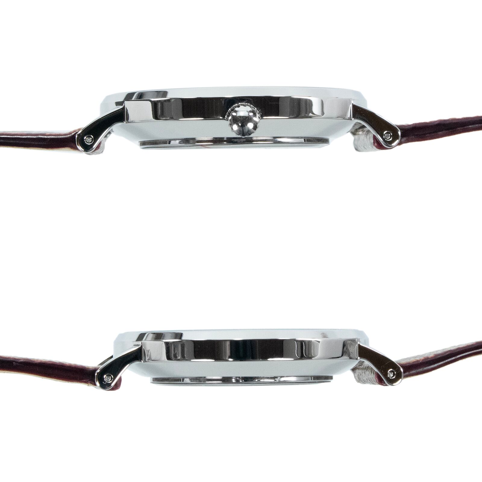 無駄を省いたスマートな2針デザインとバーインデックスが視認性を高め、約32グラムという軽量設計が手首に心地よくフィットいたします。