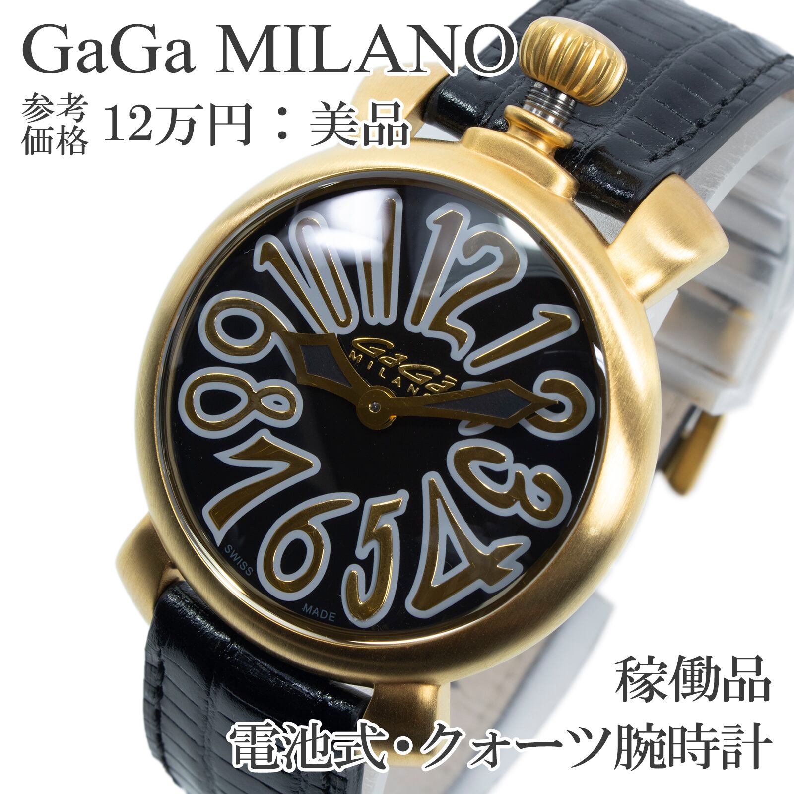 稼働品 送料無料 ガガミラノ 腕時計 クォーツ レディース マヌアーレ35mm 6023.2 黒 ブラック ゴールド 珍しい 輸入モデル 派手 綺麗 Q239