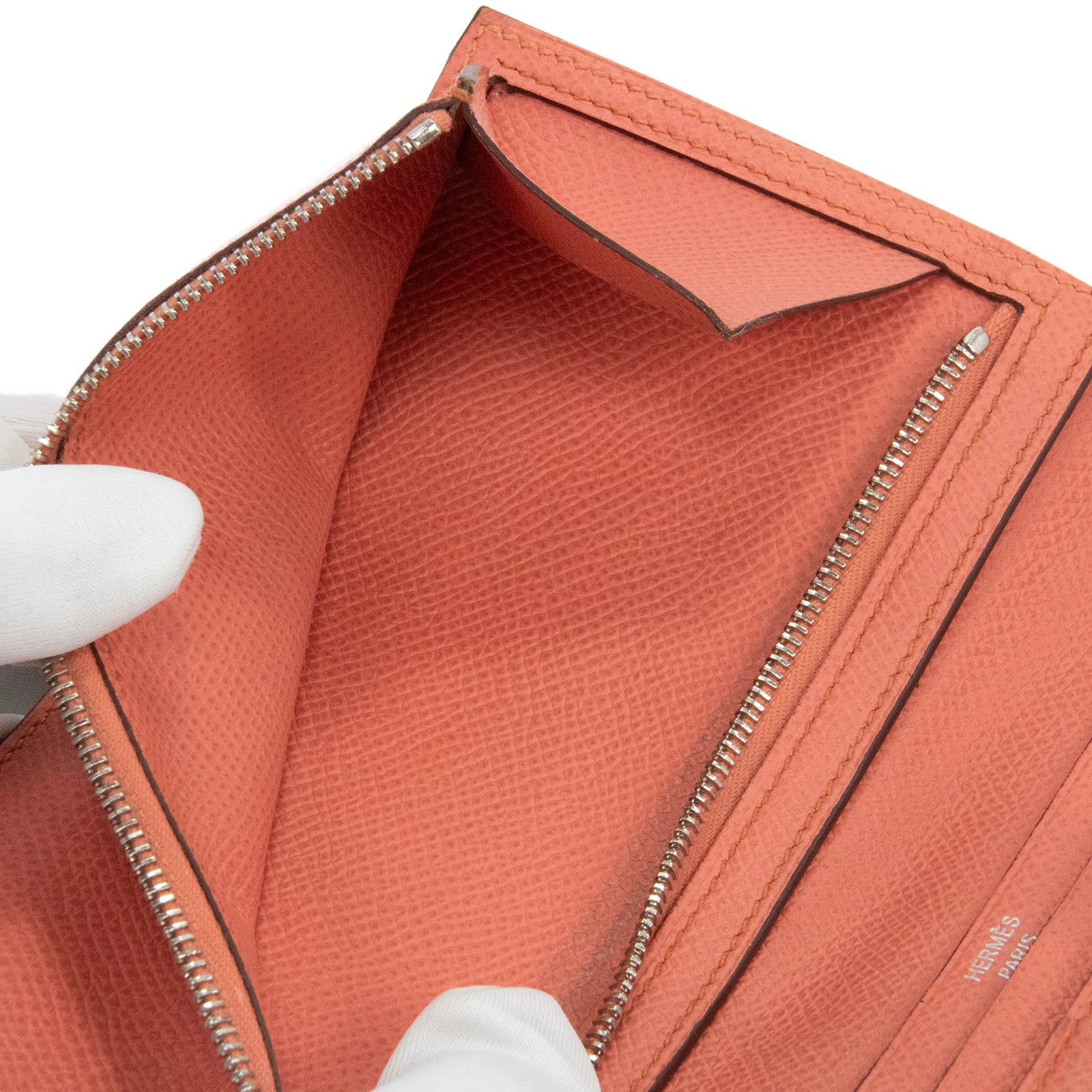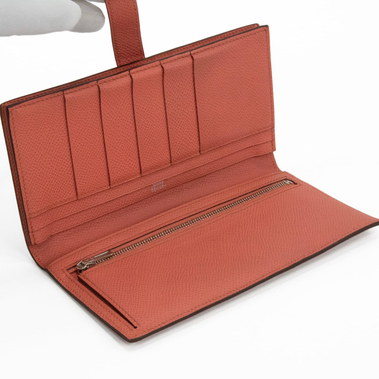 本物 送料無料 エルメス 長財布 二つ折り財布 レディース ベアン スフレ バイカラー 赤 ピンク レアカラー スリム 綺麗 Hシルバー金具 H093