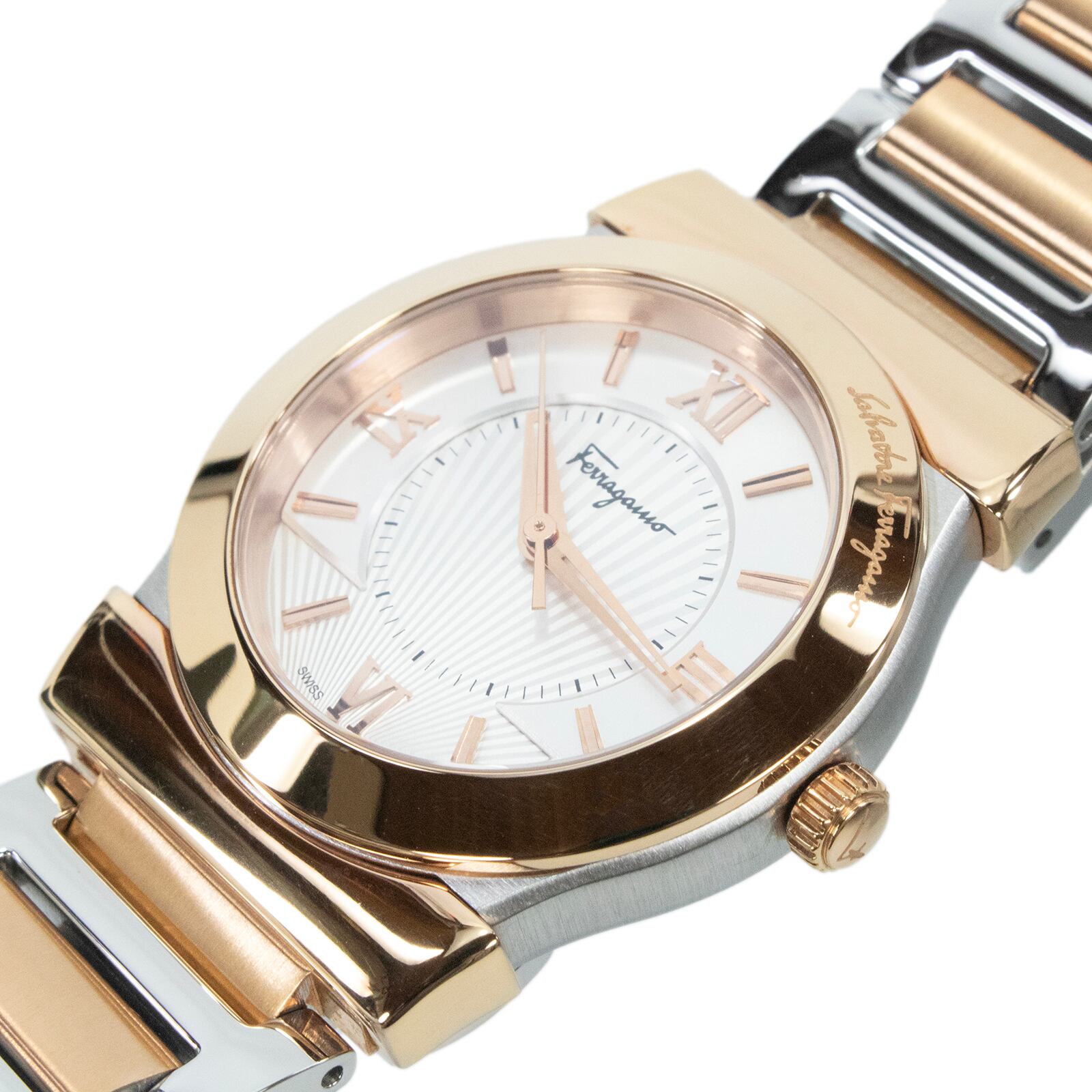 稼働品 新品同様 送料無料 フェラガモ 腕時計 クォーツ レディース ベガ FI0890016 ホワイトシルバー ピンクゴールド ガンチーニ 綺麗 X548