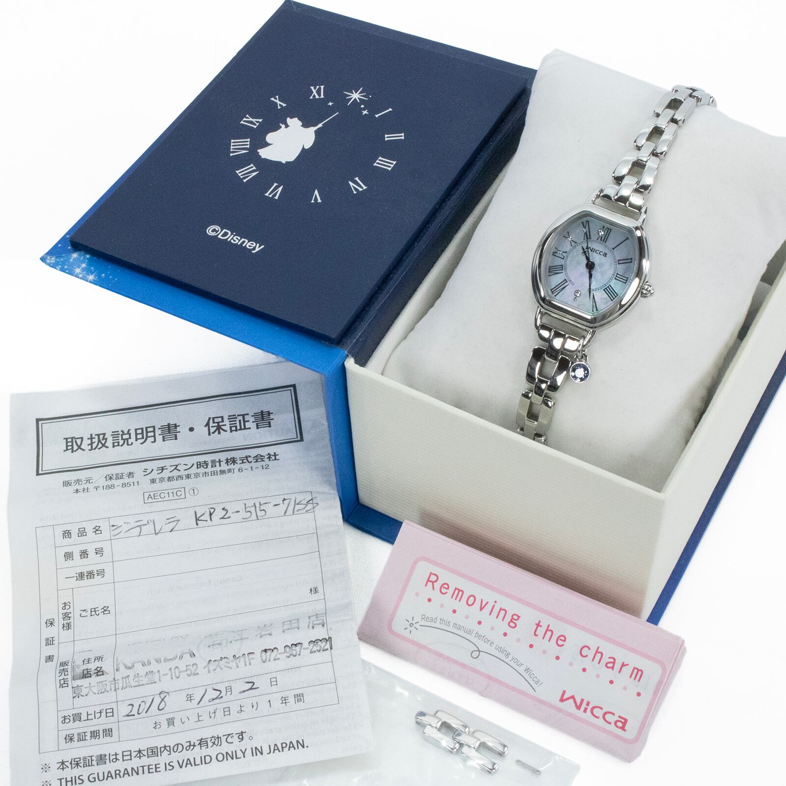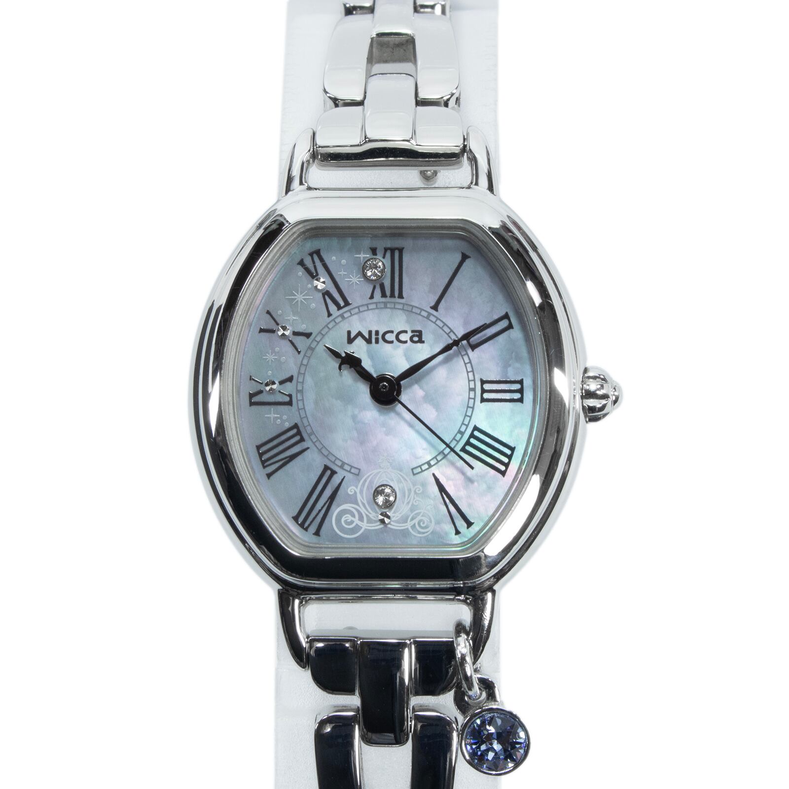 稼働品 送料無料 シチズン 腕時計 ソーラー レディース ディズニー「シンデレラ」コラボモデル wicca 青 トノー型 シェル盤 かわいい X552