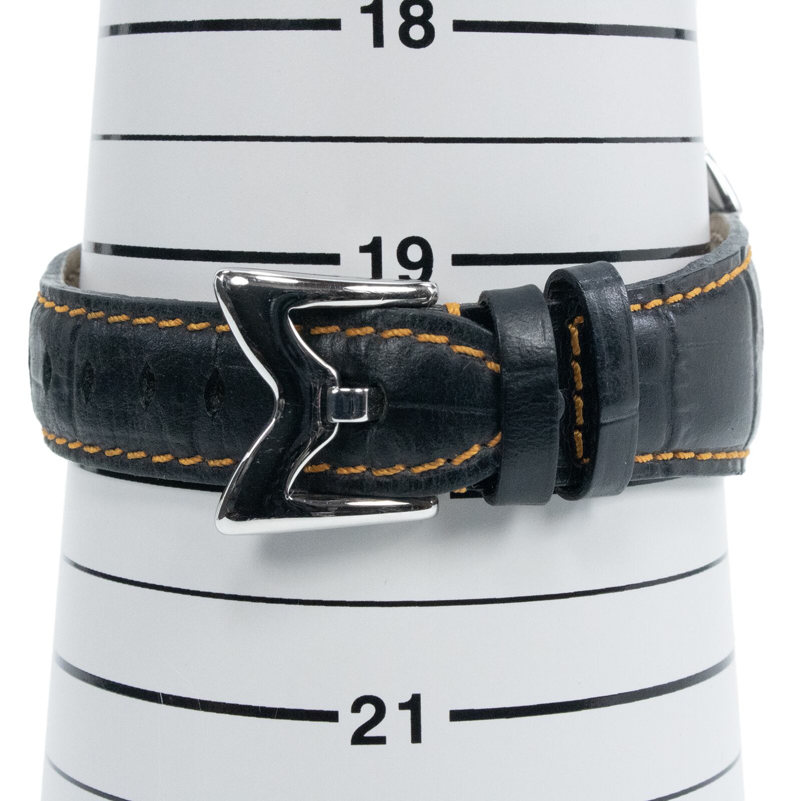上質なブラックのレザーベルトが全体をスマートに引き締め、大人の遊び心を演出いたします。