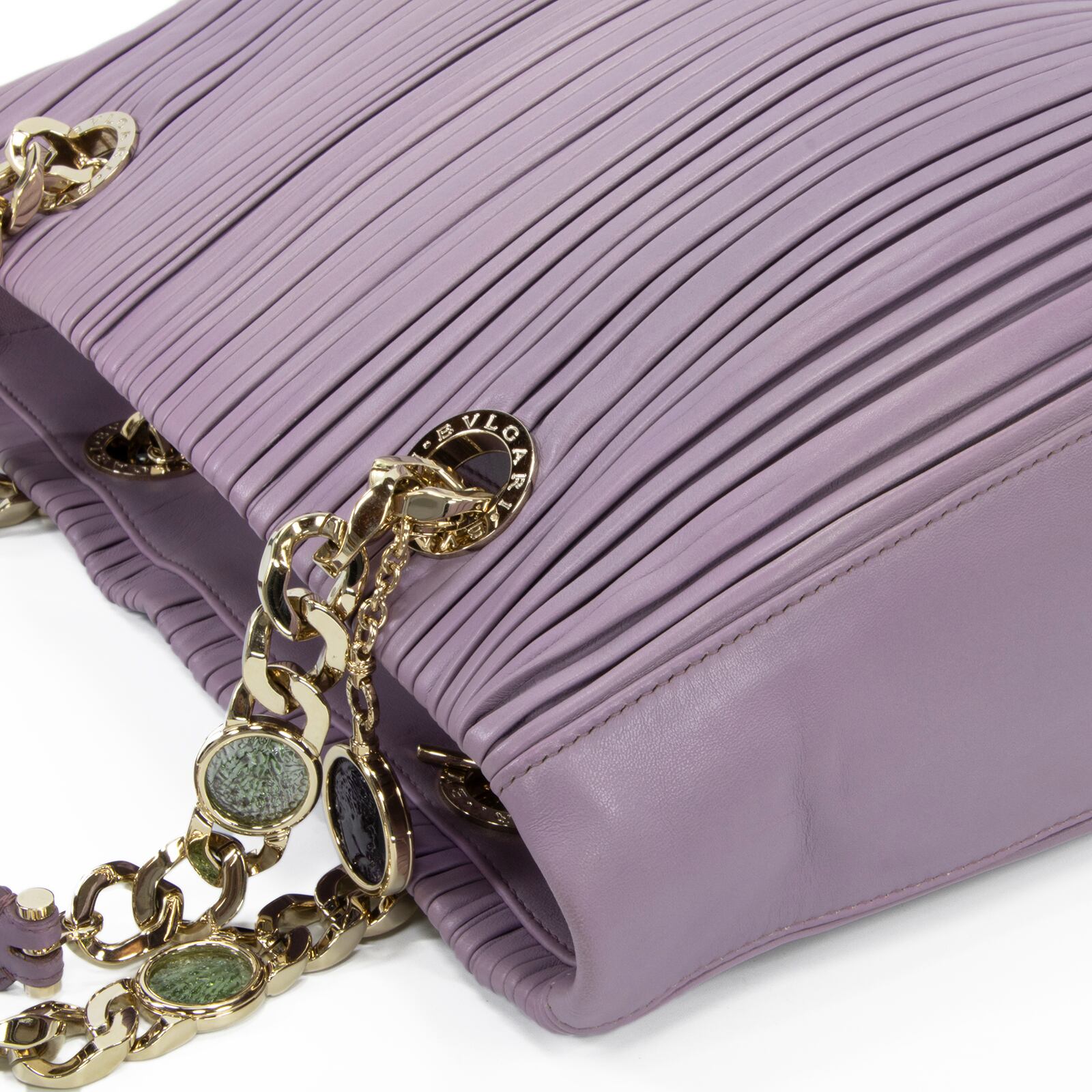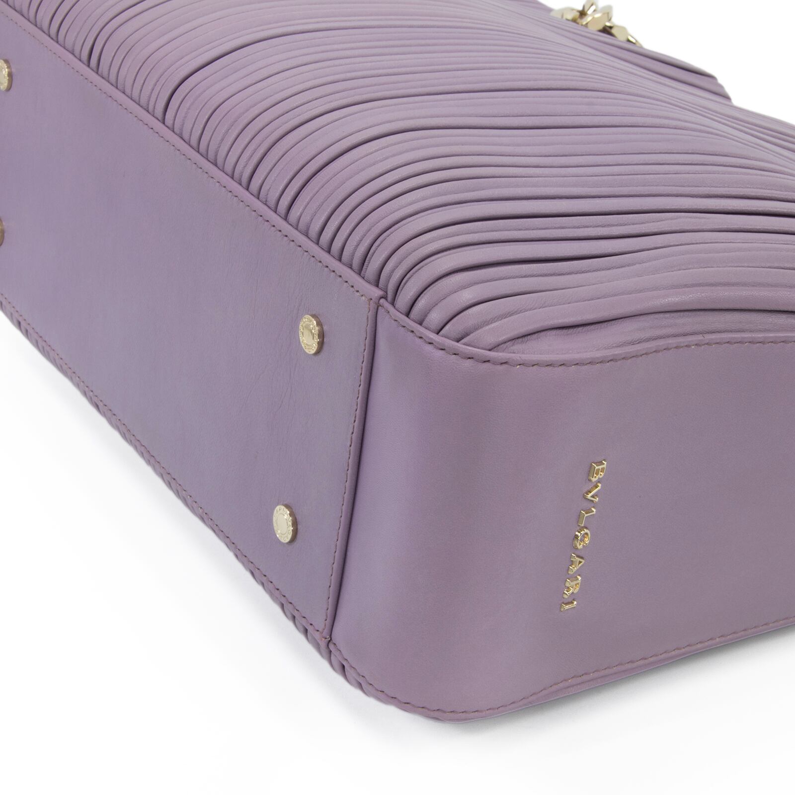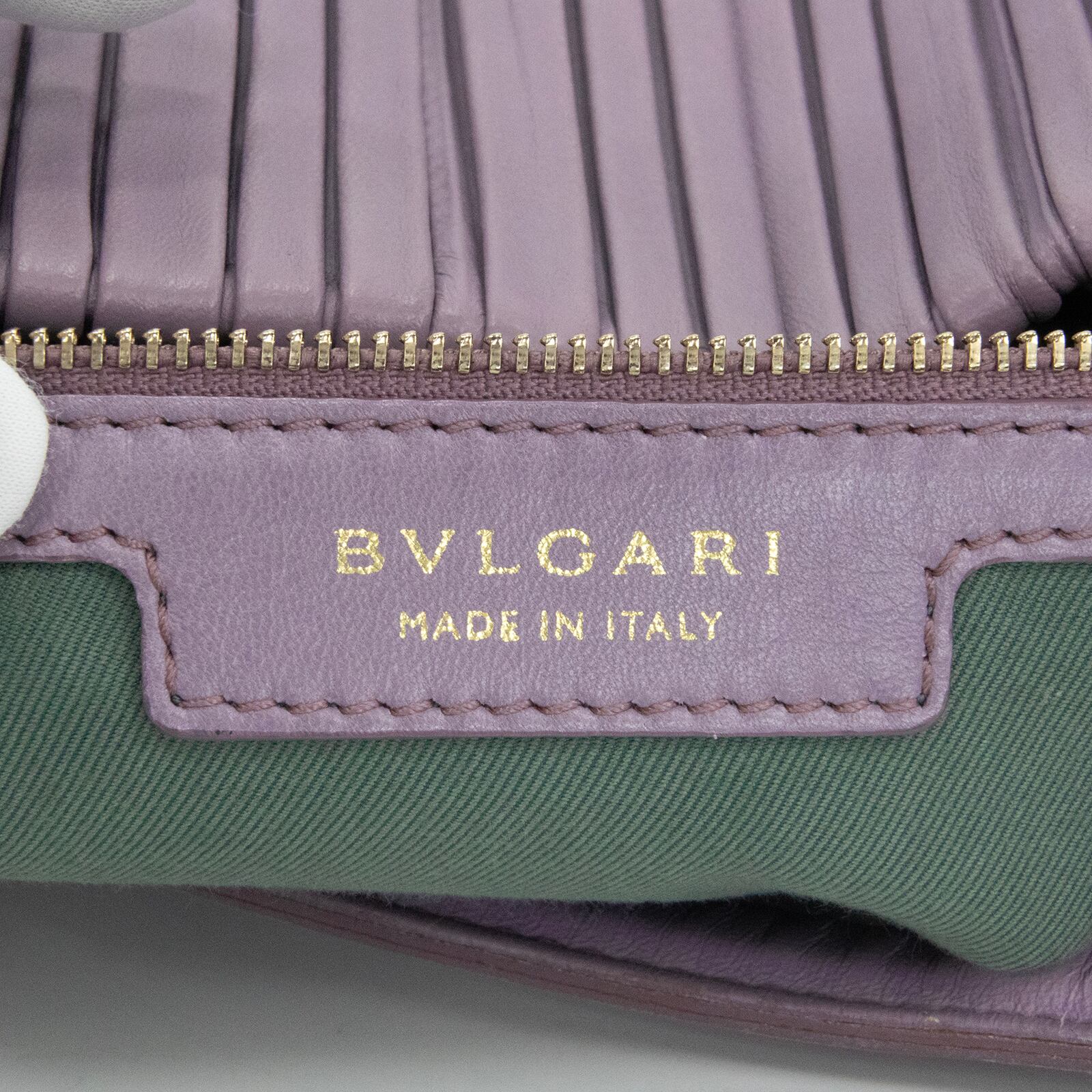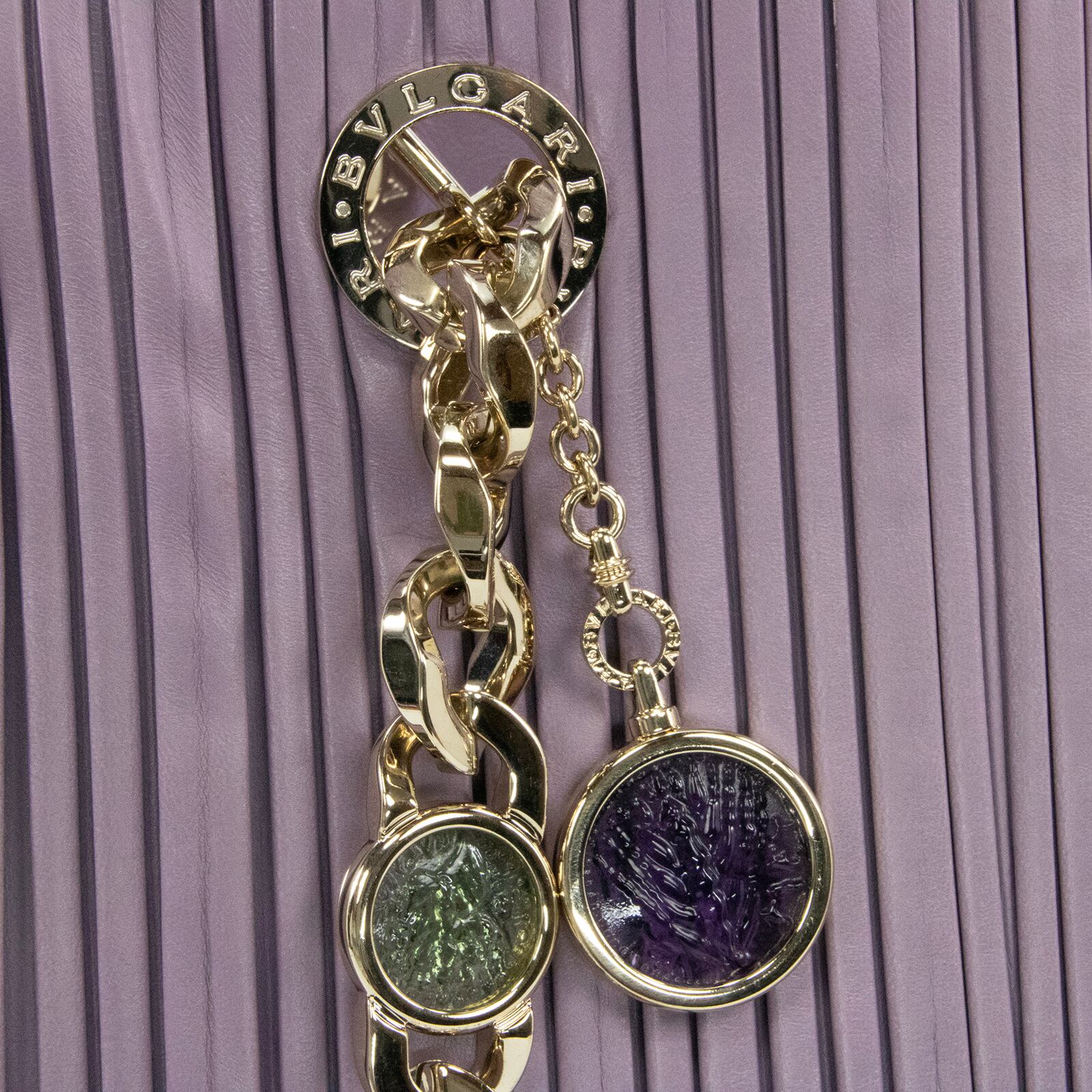 こちらは、古代コインの神秘的な輝きと繊細なプリーツが調和いたしました、ブルガリのモネーテ ナッパプリセ・ハンドバッグでございます。