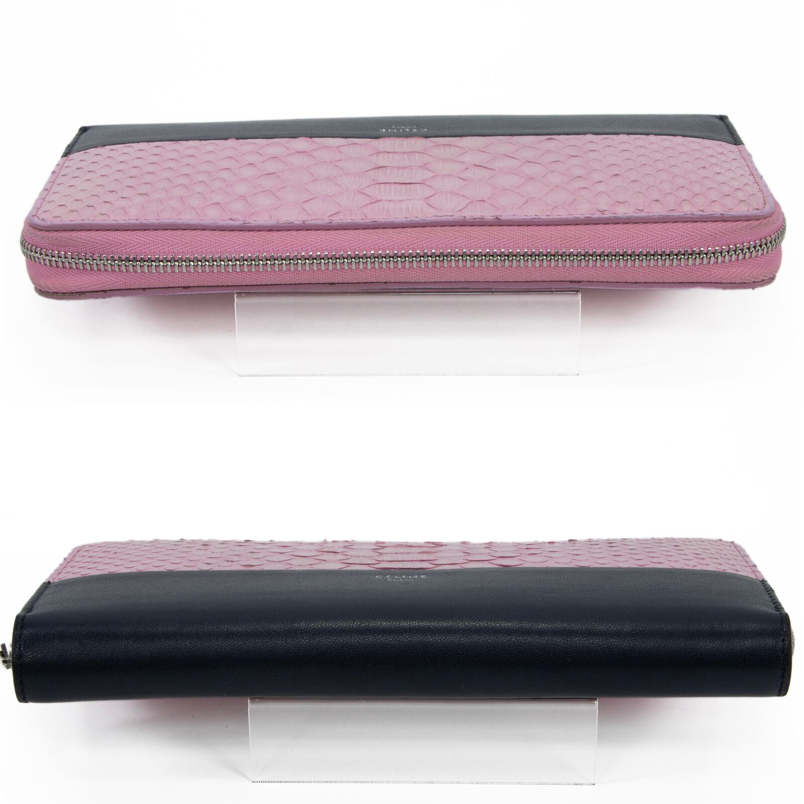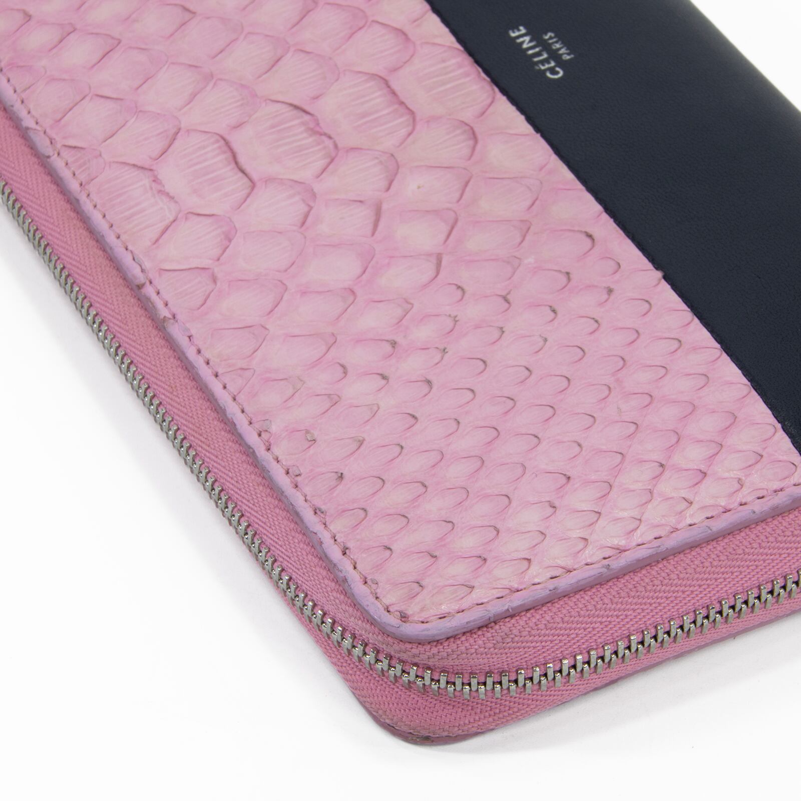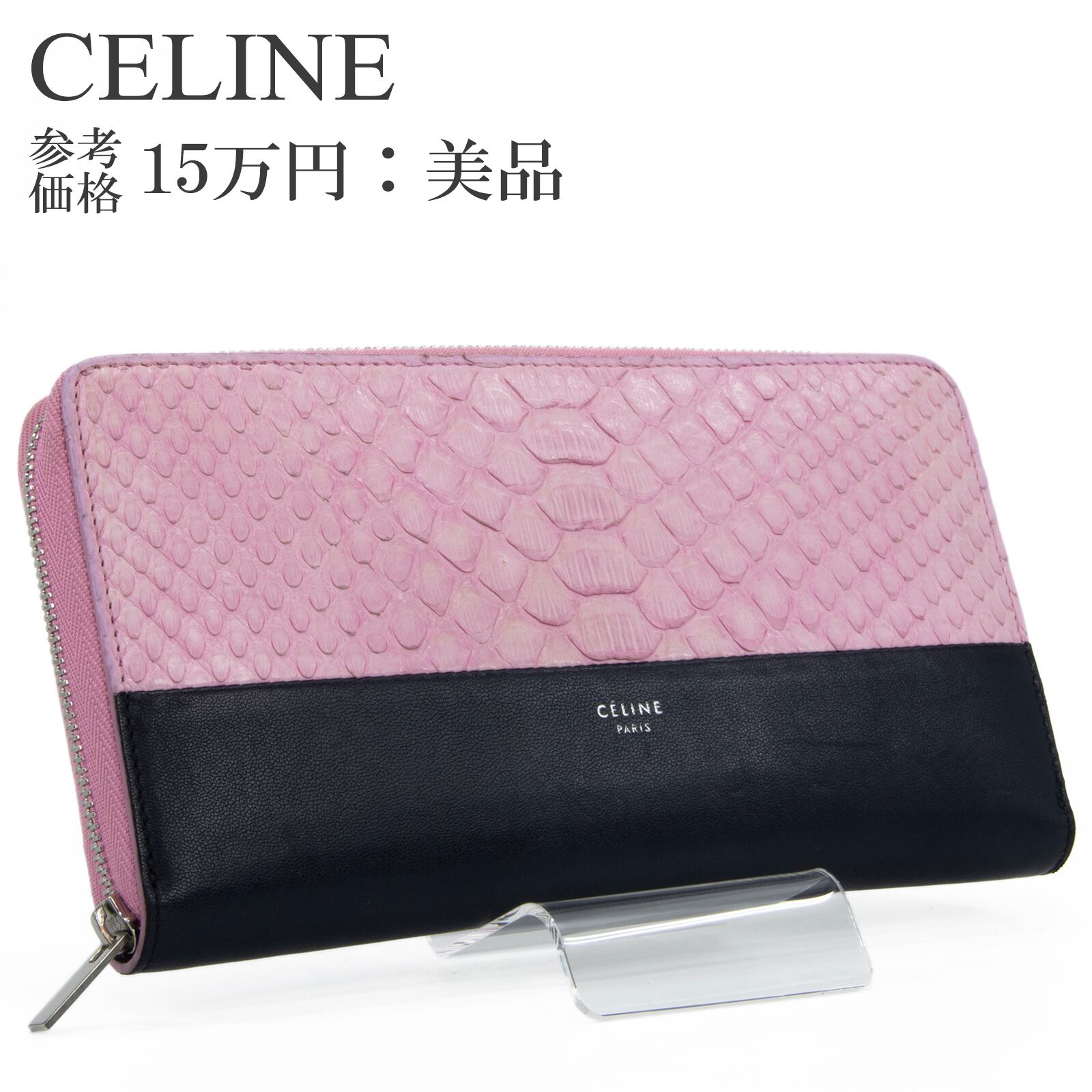 本物 送料無料 セリーヌ 長財布 ラウンドファスナー レディース パイソン ピンク 黒 ブラック レア フィービー期 蛇革 ロゴ かわいい H095