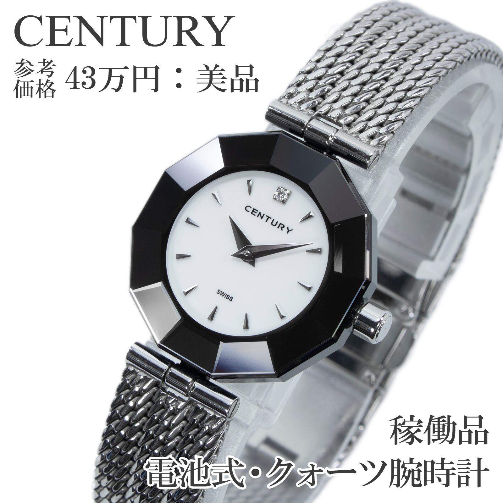 稼働品 送料無料 センチュリー 腕時計 クォーツ 2針 レディース タイムジェム プライムタイム 白 シンプル ダイヤモンド 小さめ 綺麗 X559