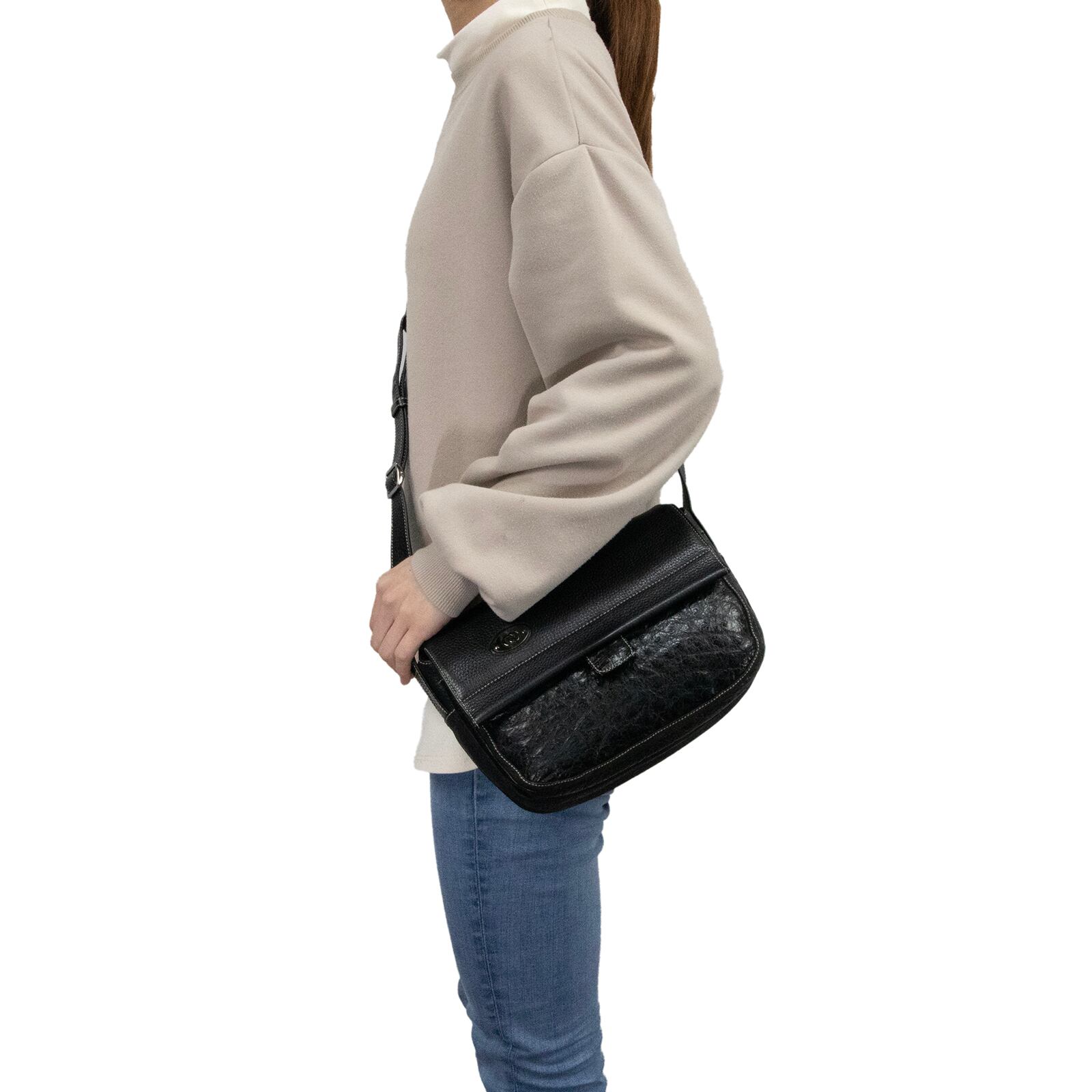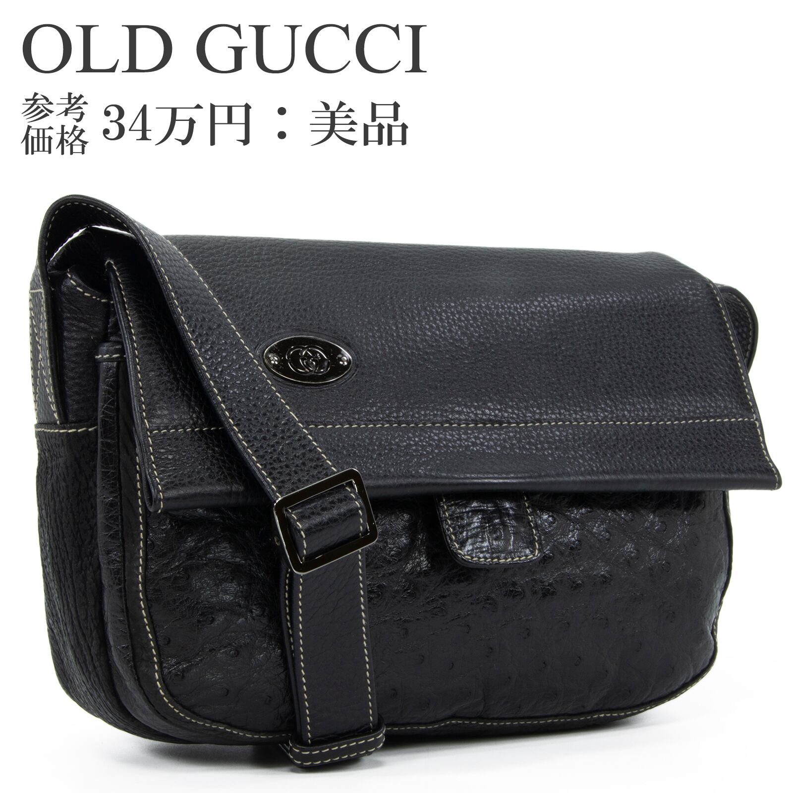本物 送料無料 オールドグッチ ショルダーバッグ クロスボディバッグ メンズ レディース オーストリッチ 黒 斜め掛け GG 革 鞄 バック L242