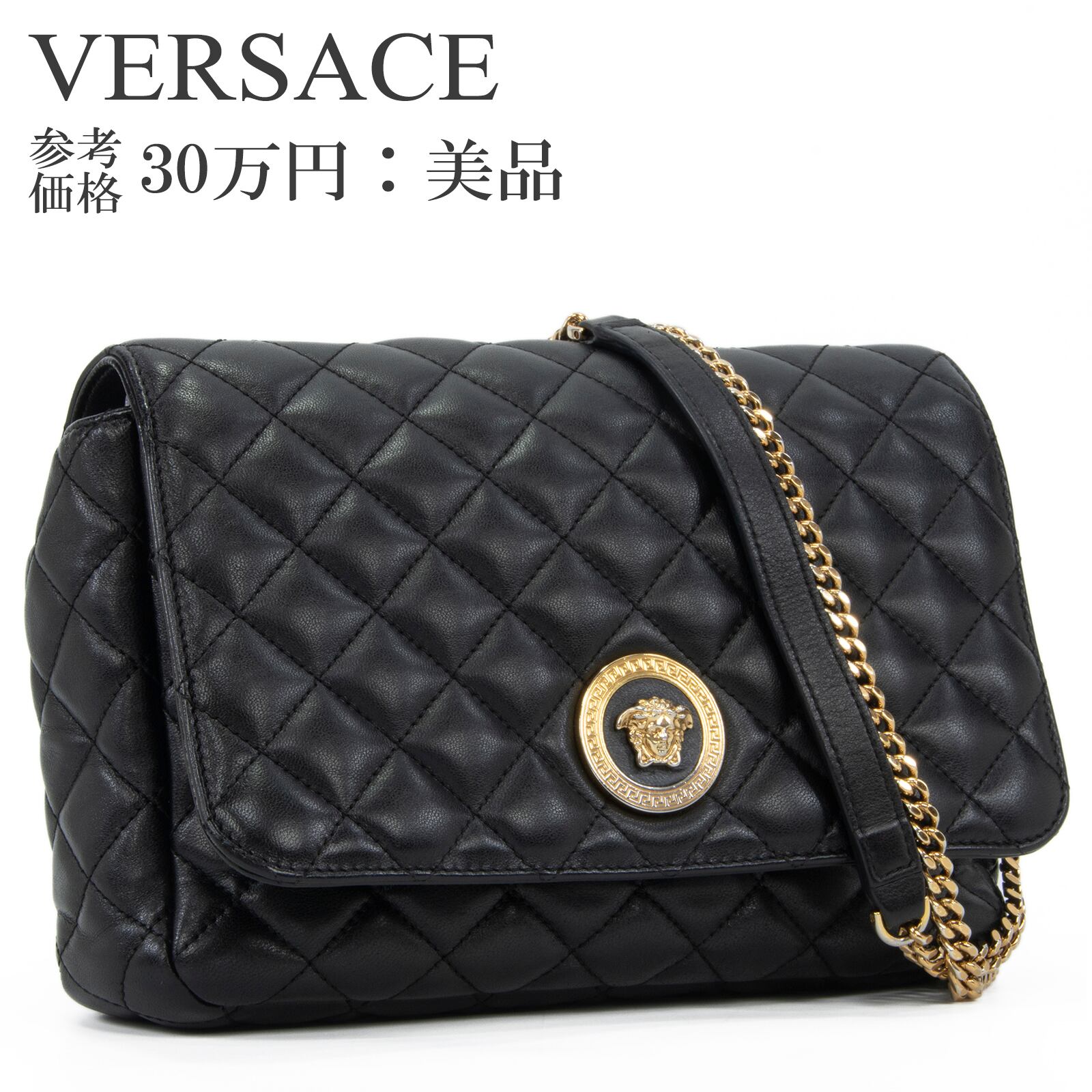 特徴:珍しい・レアモデル・Y2K・00s・90s・肩掛け・斜め掛け・パーティーバッグ・ゴールドチェーン・メドゥーサ・キルティング・本革・レザー・ゴールド金具・ハイブランド・おしゃれ