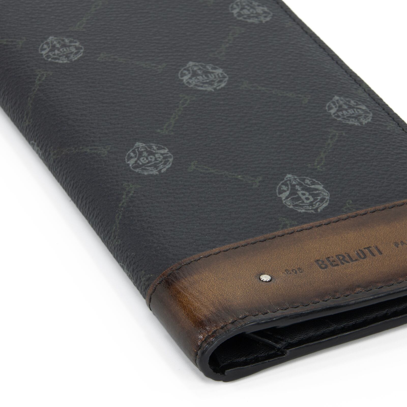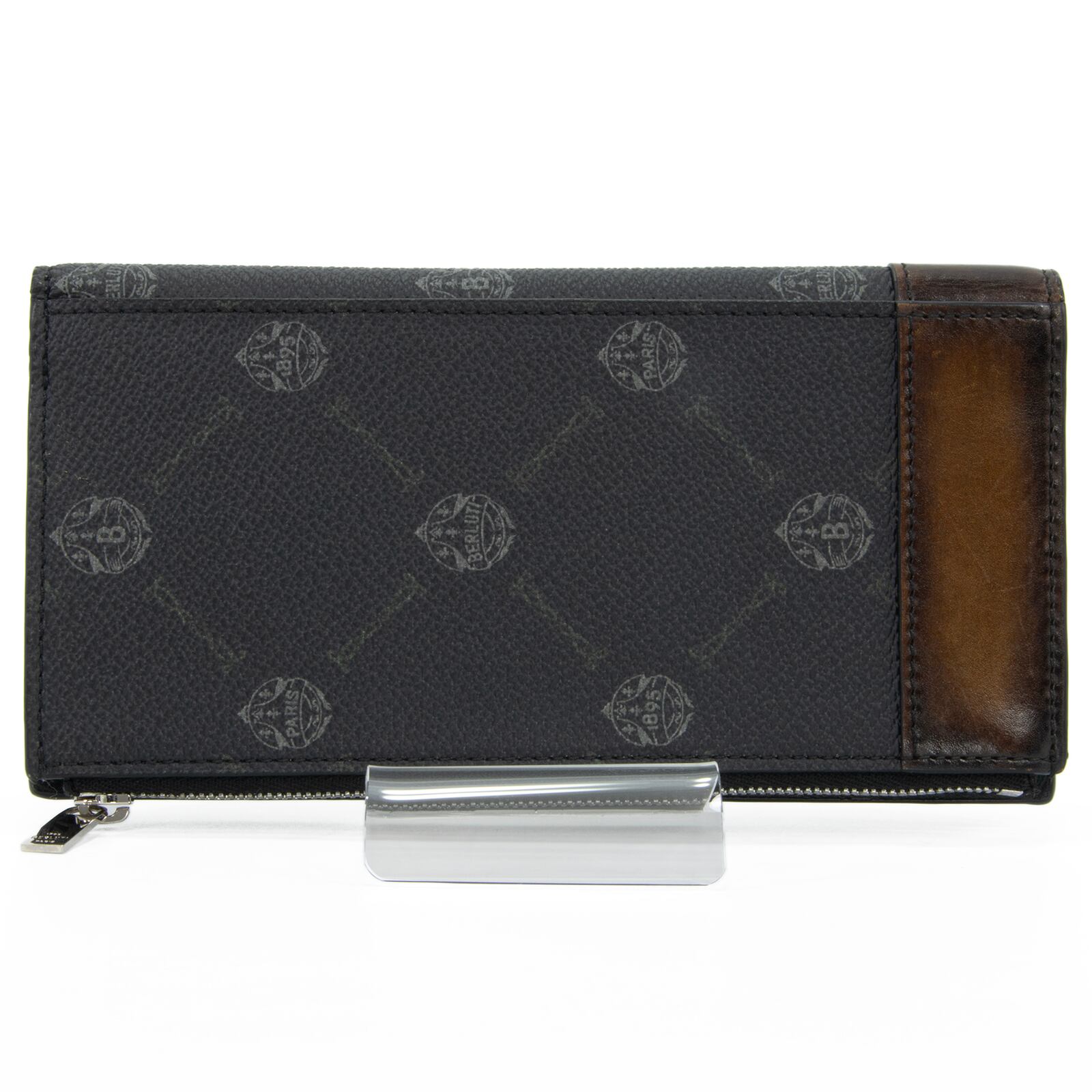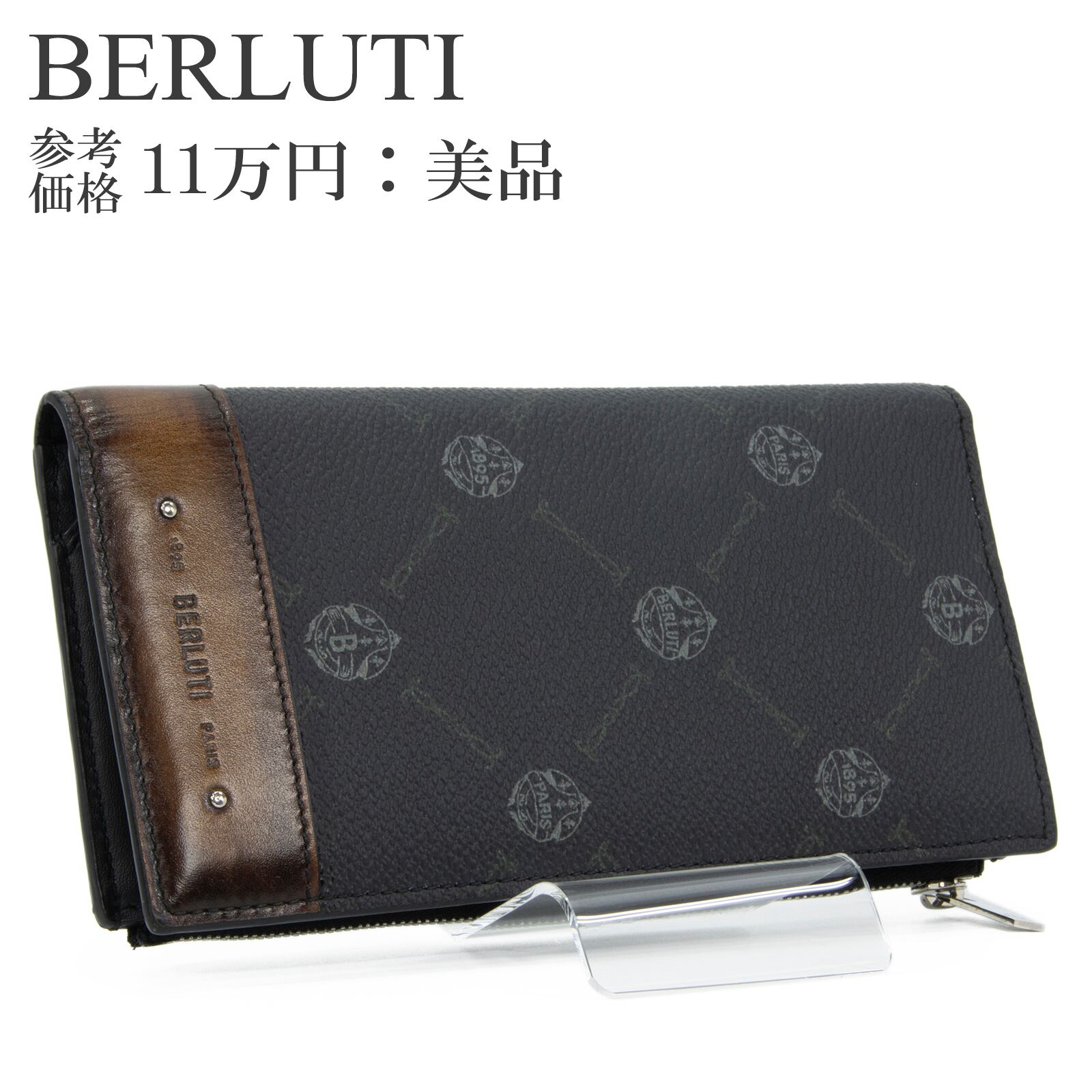 本物 送料無料 ベルルッティ 長財布 二つ折り財布 メンズ ネオサンタル 黒 茶色 グレー レア 総柄 紋章 ロゴ マーク パティーヌ 綺麗 C255