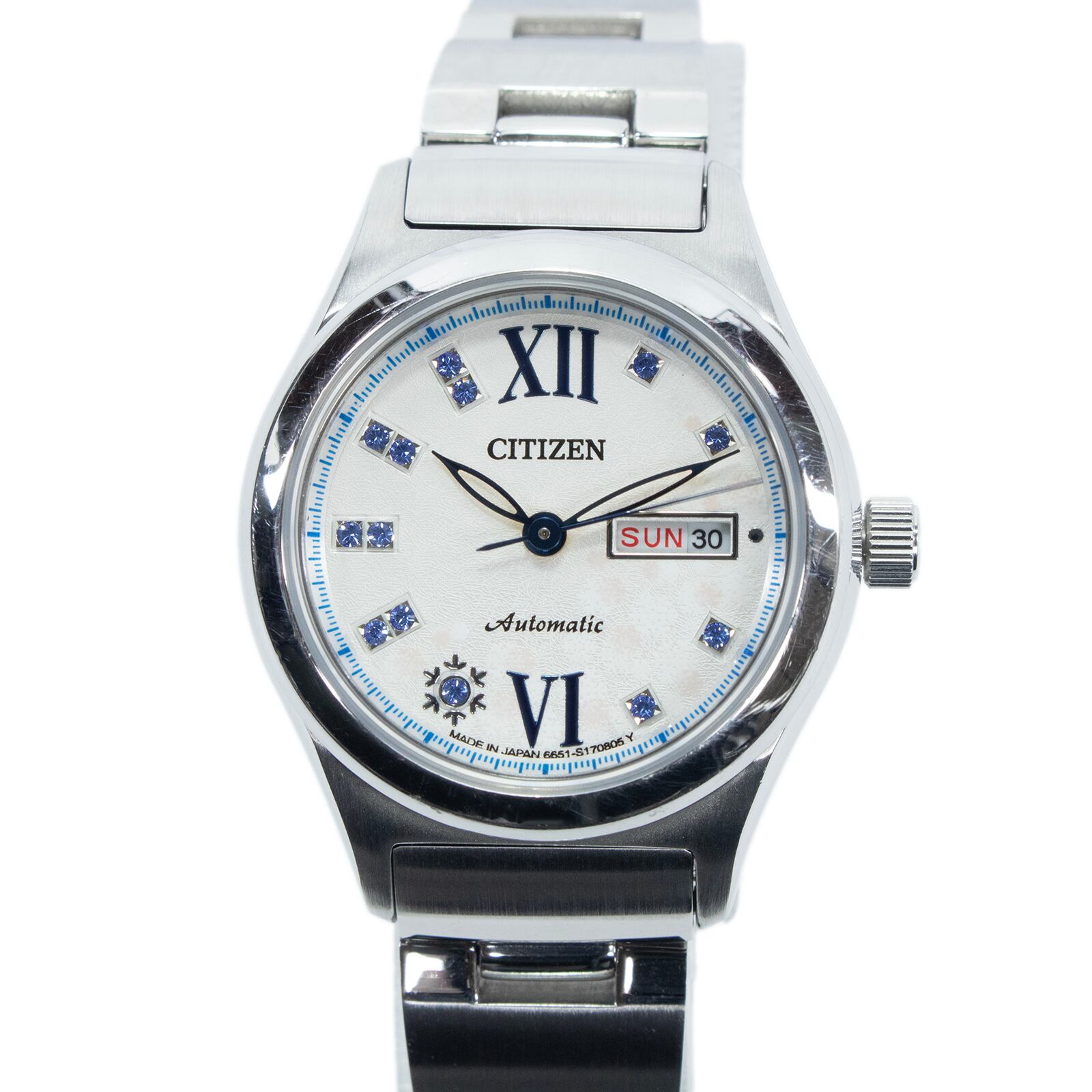 稼働品 送料無料 シチズン 腕時計 自動巻き レディース 舞雪 1000本限定 PD7161-58W 白 裏スケ スワロフスキークリスタル 小さめ 青針 X571
