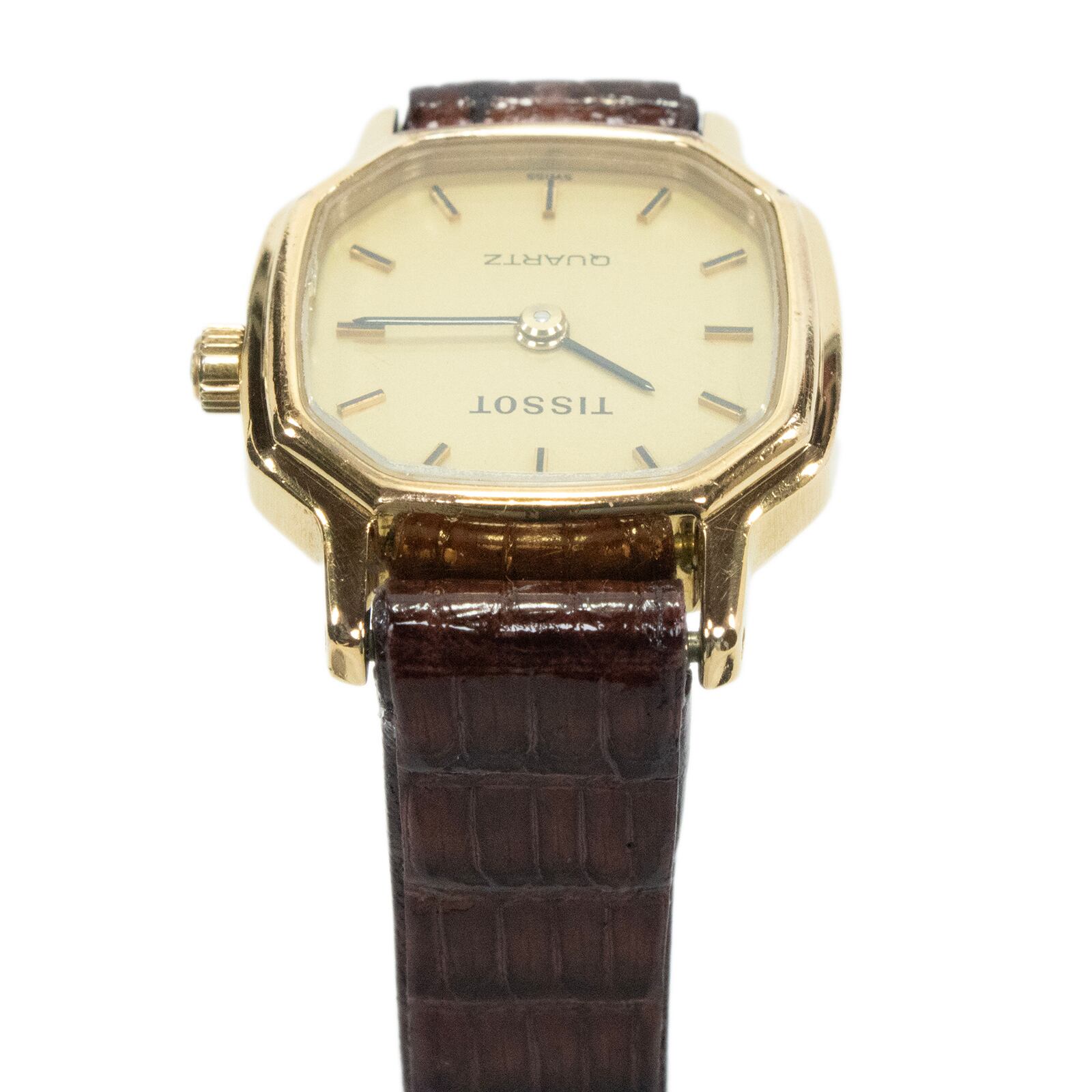 こちらは、アンティークな魅力と温かみのあるゴールドカラーが目を惹く、ティソの腕時計でございます。