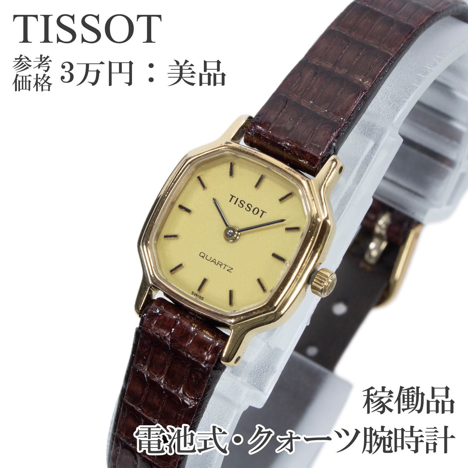 稼働品 送料無料 ティソ 腕時計 クォーツ レディース 黄色 イエロー ゴールド シンプル オクタゴン ヴィンテージ 小さめ ロゴ 綺麗 Z023