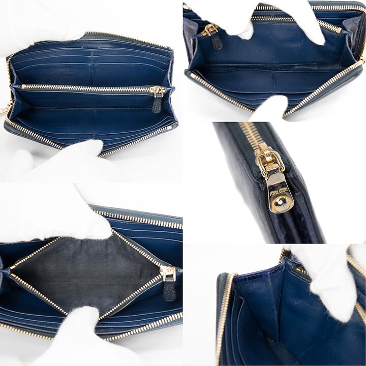 【お値引交渉大歓迎・送料無料・レア】Miu Miu・ミュウミュウ・長財布(人気・小銭入れあり・女性・メンズ・紺色・ネイビーブルー・H019)