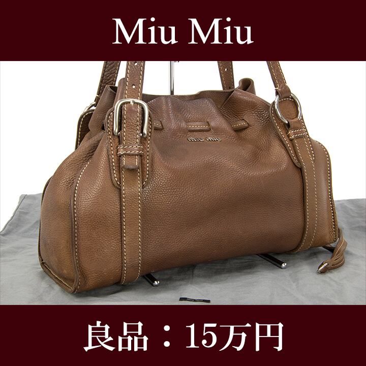 【お値引交渉大歓迎・送料無料・良品】Miu Miu・ミュウミュウ・ショルダーバッグ(人気・A4・女性・茶色・ブラウン・鞄・バック・Y027)