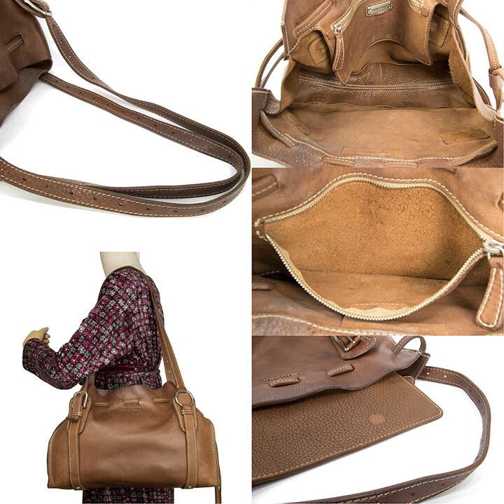 バッグの外側は、擦れや薄汚れなどがございますが、高級皮革の深い味わいが感じられる良品でございます。