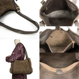 バッグの外側は、ショルダーの末端部分の革のヨレや、スエードの毛羽立ちなどがございますが、高級皮革の深い味わいが感じられる良品でございます。