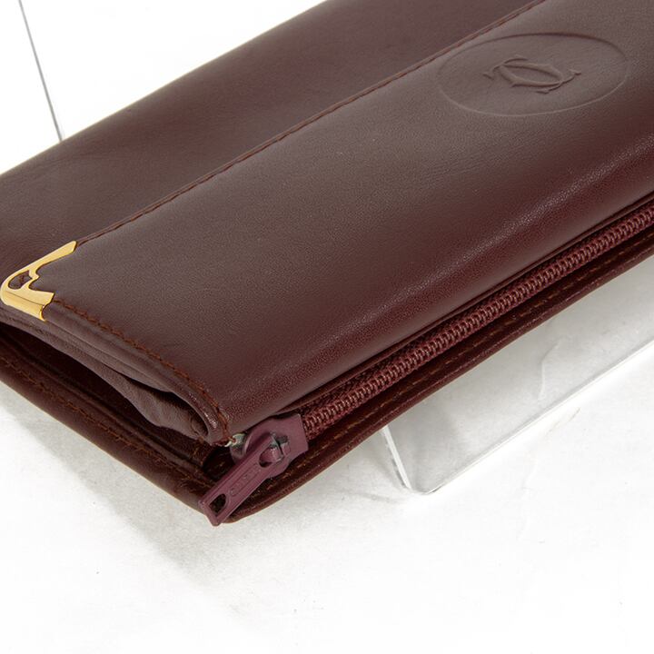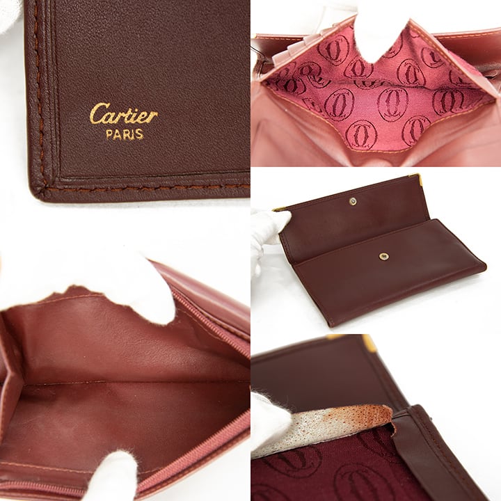 【最終価格・送料無料・良品】Cartier・カルティエ・長財布・三つ折り財布(マスト・人気・高級・珍しい・女性・バーガンディー・G030)