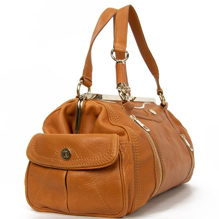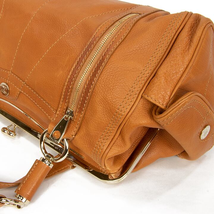 バッグの外側は、金具に小傷が若干あり、ファスナーポケット周辺に仕様上どうしてもできてしまうシミが若干ございますが、高級皮革の深い味わいが感じられる良品でございます。