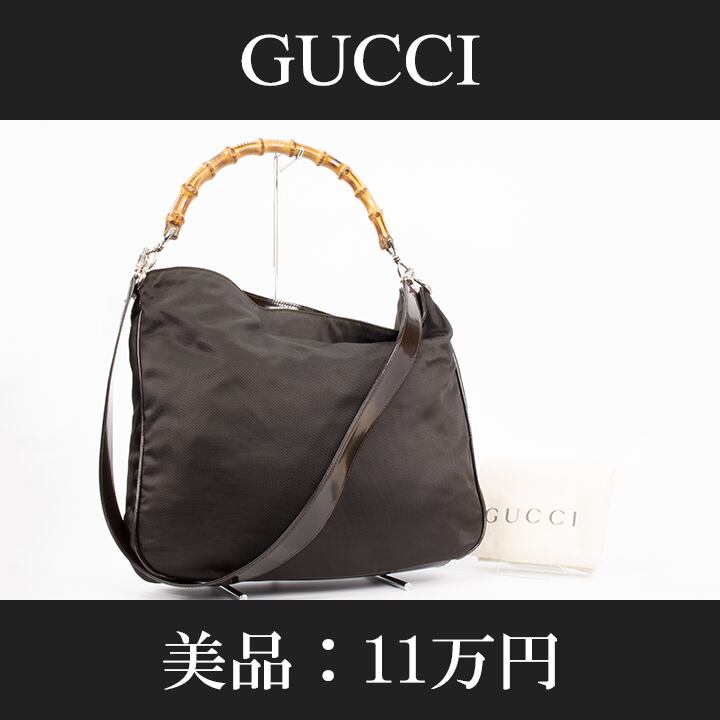 【限界価格・送料無料・美品】GUCCI・グッチ・2WAYショルダーバッグ(バンブー・人気・A4・綺麗・高級・茶色・ブラウン・鞄・バック・B092)