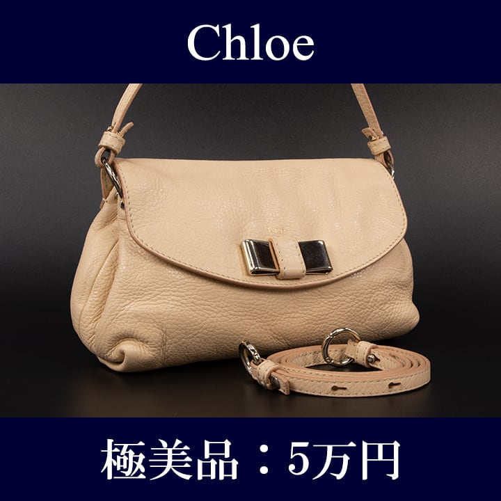 【限界価格・送料無料・極美品】Chloe・クロエ・2WAYショルダーバッグ(リリィ・人気・綺麗・ポーチ・リボン・ベージュ・鞄・バック・I023)