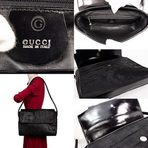 【限界価格・送料無料・極美品】OLD GUCCI・オールドグッチグッチ・ショルダーバッグ(ハラコ・綺麗・黒・ブラック・鞄・バック・A622)