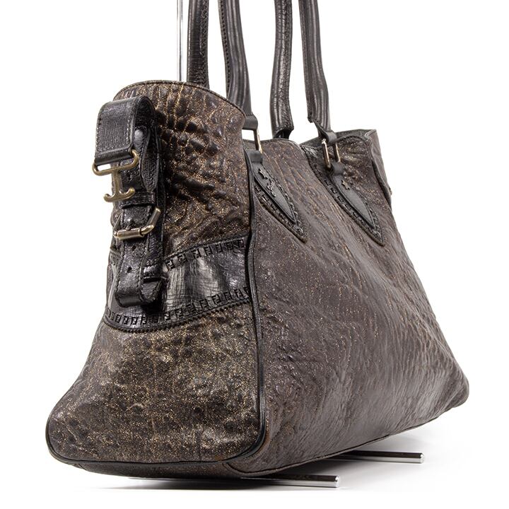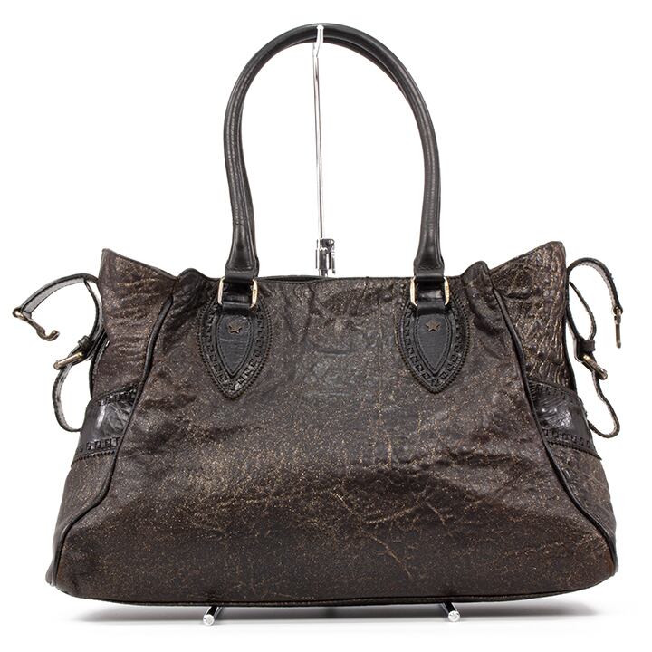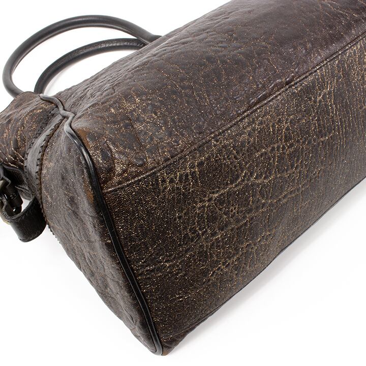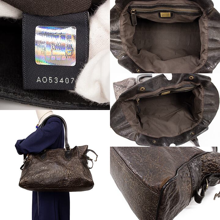 バッグの外側は、表の右側のショルダー付け根に芯折れが若干あり、角擦れなどがございますが、高級皮革の深い味わいが感じられる良品でございます。