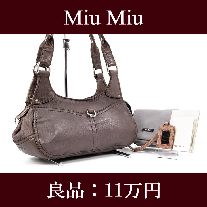 【限界価格・送料無料・良品】Miu Miu・ミュウミュウ・ショルダーバッグ(人気・高級・レア・珍しい・灰色・グレー・鞄・バック・F064)