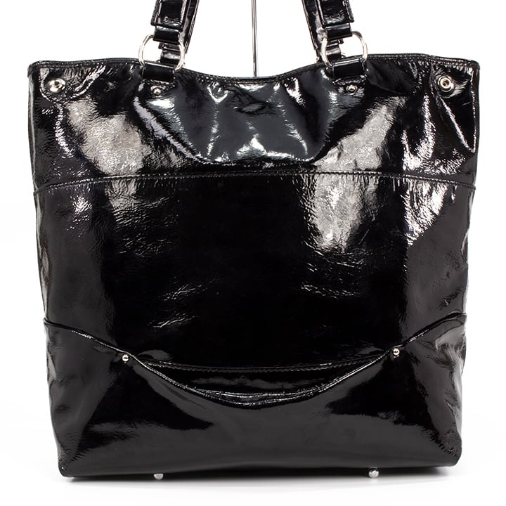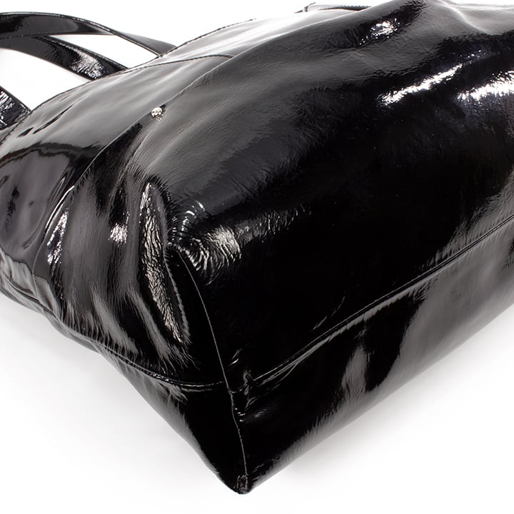 バッグの外側は、開け口付近に仕様上どうしてもできてしまう革のクラック・パテントレザーのくもりなどが若干ございますが、全体的には美品でございます。