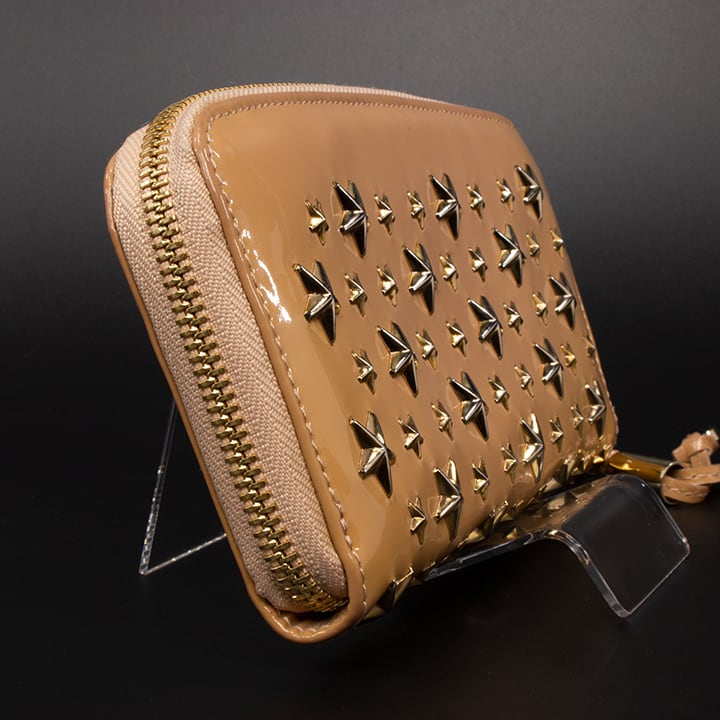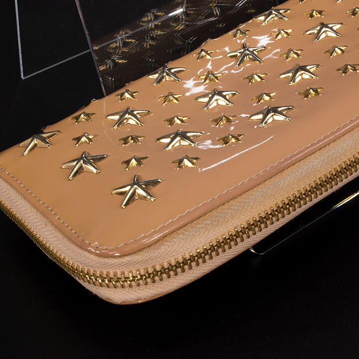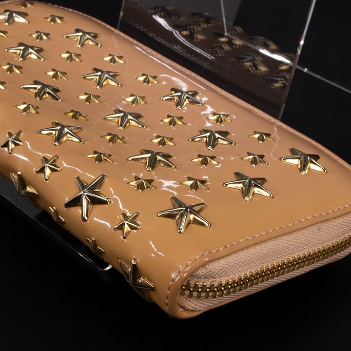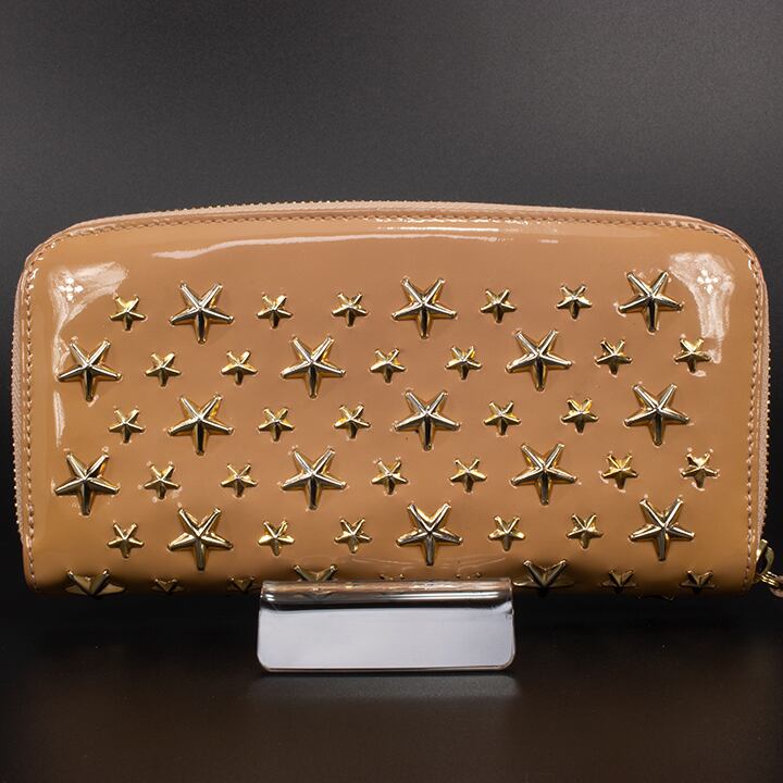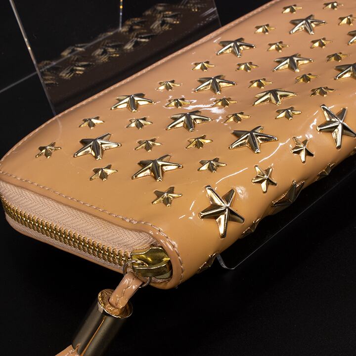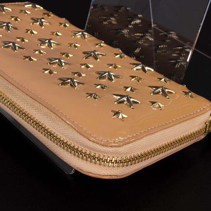 【限界価格・送料無料・美品】JIMMY CHOO・ジミーチュウ・長財布・ラウンドファスナー(FILIPA・人気・綺麗・ベージュ・星・スター・D085)