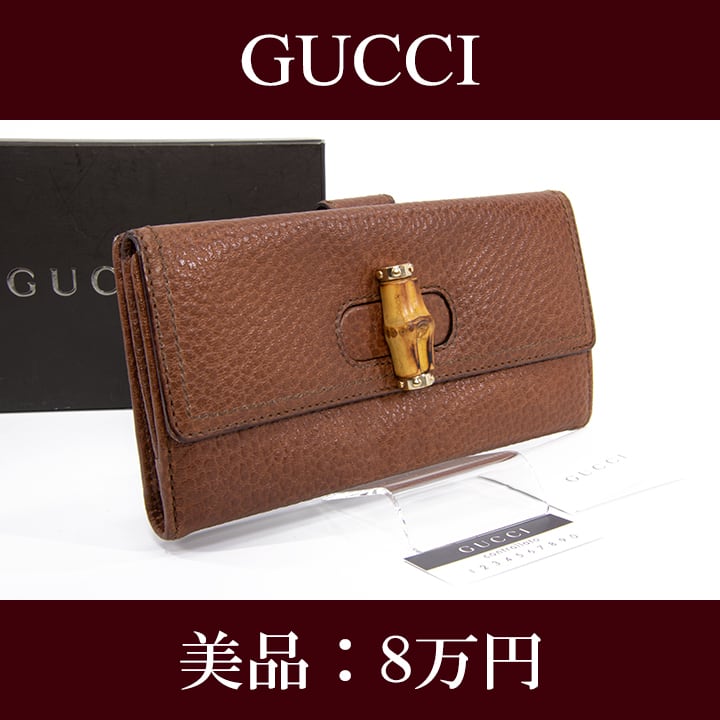 【限界価格・送料無料・美品】GUCCI・グッチ・長財布・二つ折り財布(バンブー・人気・綺麗・メンズ・男性・女性・茶色・ブラウン・H038)