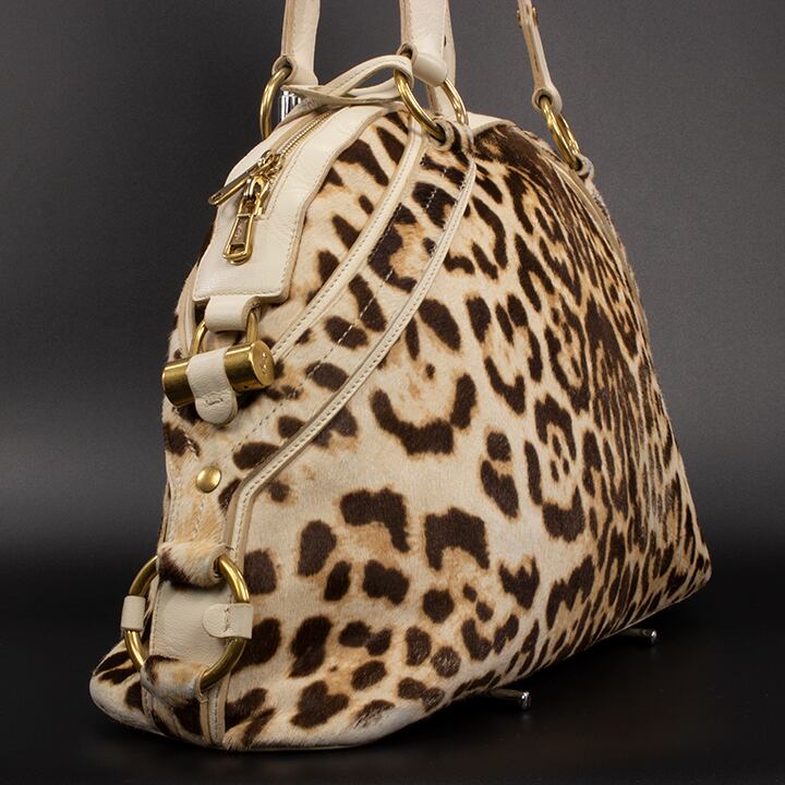 2019年10月ごろ、東京都荒川区の大手質屋で購入いたしました、イヴ・サンローランの大人気ライン・ミューズのレオパード柄・ハラコのハンドバッグでございます。