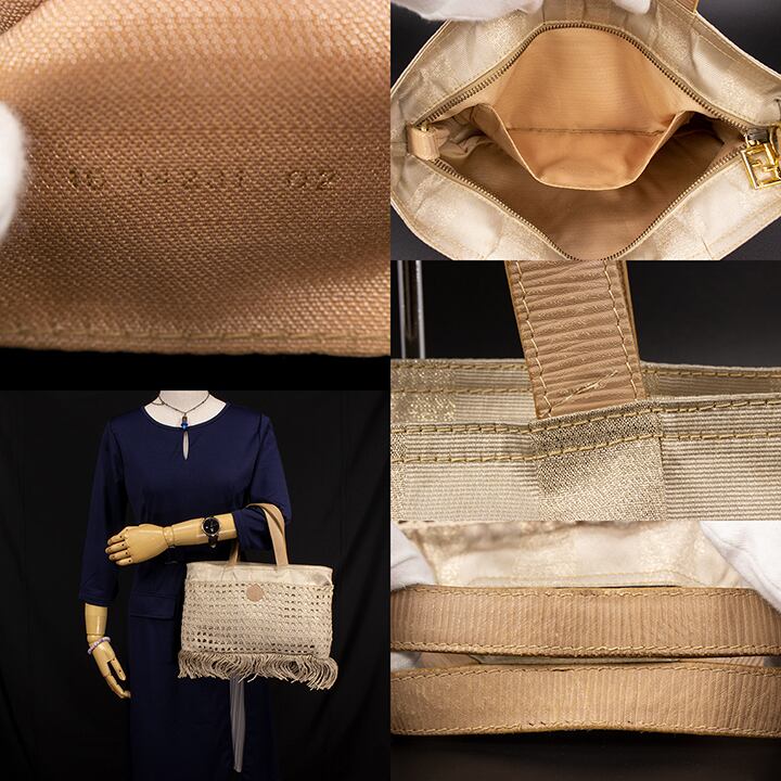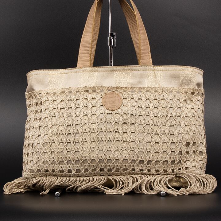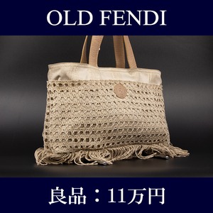 【限界価格・送料無料・良品】OLD FENDI・オールドフェンディ・ハンドバッグ(人気・レア・珍しい・ベージュ・ゴールド・鞄・バック・J011)