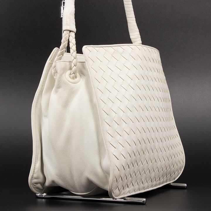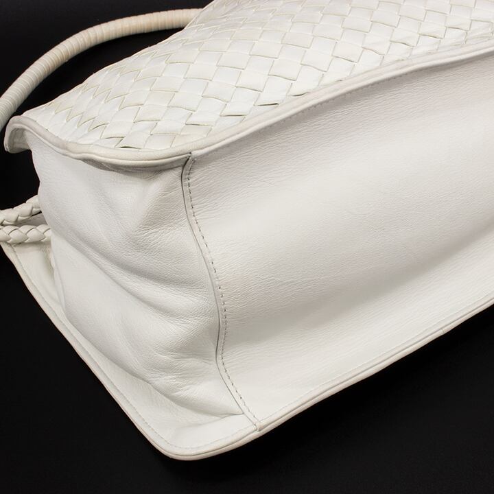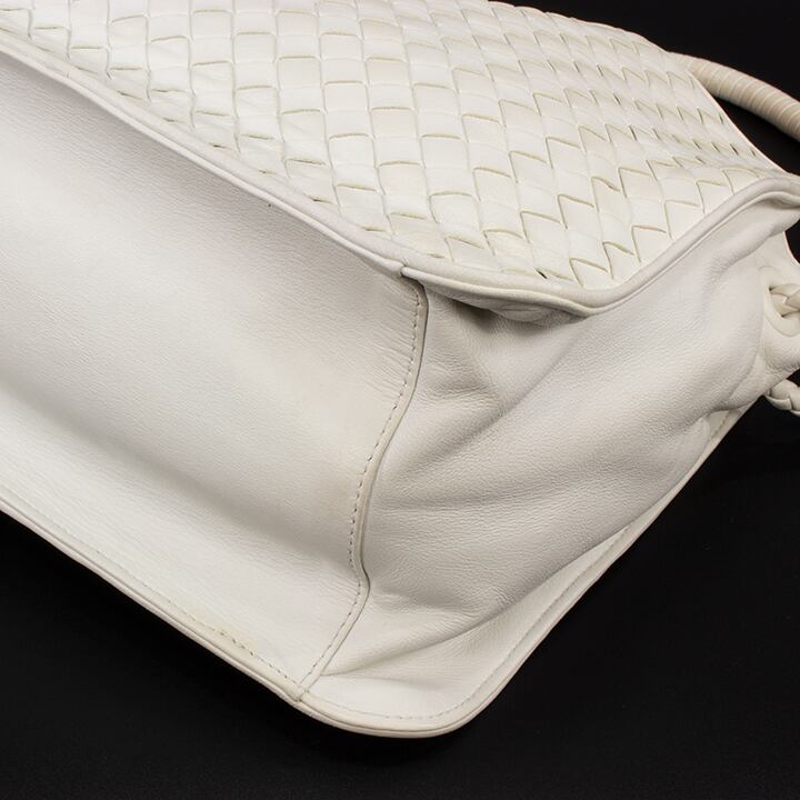 【限界価格・送料無料・良品】Bottega・ボッテガ・ショルダーバッグ(イントレチャート・人気・高級・白・ホワイト・鞄・バック・J013)