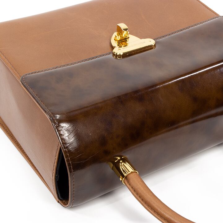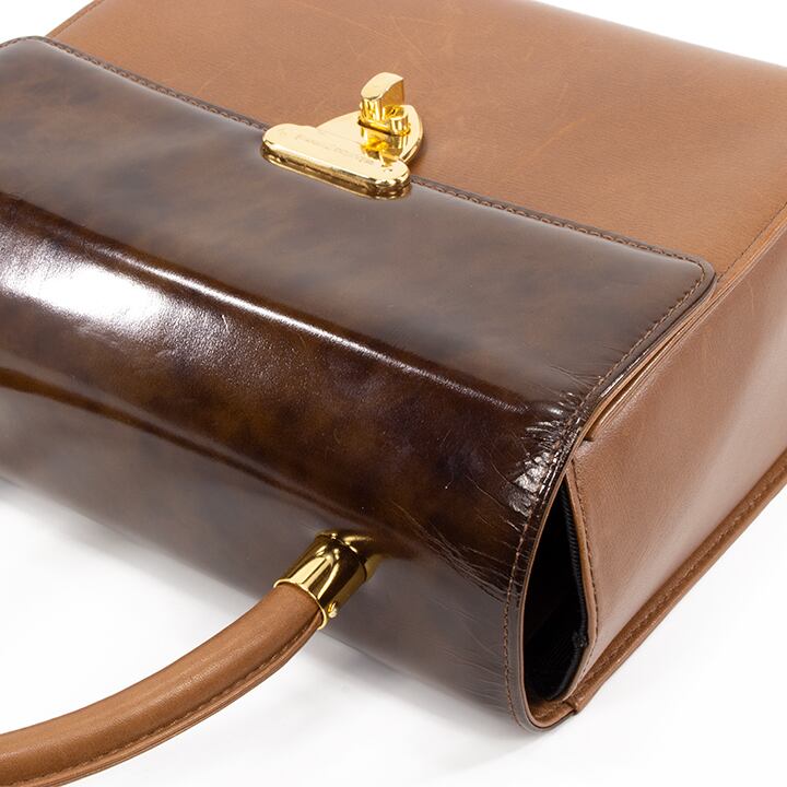 バッグの外側・内側共に、金具とレザーに擦れや小傷などが若干ございますが、高級皮革の深い味わいが感じられる良品でございます。