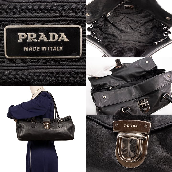 【限界価格・送料無料・良品】PRADA・プラダ・ショルダーバッグ(ANTIC EASY A・人気・レア・珍しい・黒・ブラック・鞄・バック・E143)