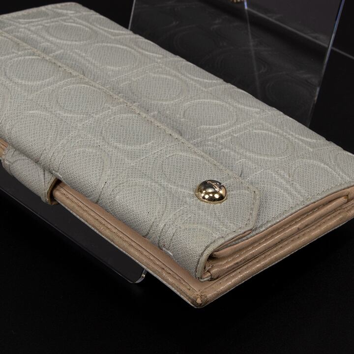 こちらのお財布は、一目でフェラガモとわかるガンチーニの総柄が特徴的で、落ち着いた大人の美しさと高級感がございます。