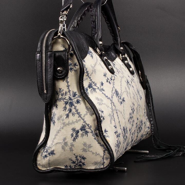 こちらのバッグは、一目でバレンシアガとわかる圧倒的存在感がありながらも、穏やかな色味の花柄が刺繍された極めて珍しいモデルで、落ち着いた大人の美しさと洗練された気品がございます。