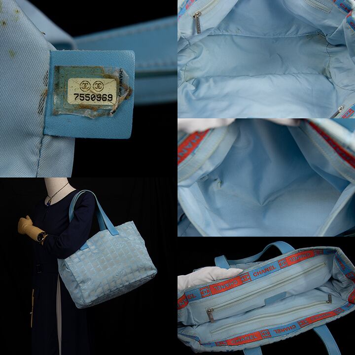【本物・送料無料・良品】CHANEL・シャネル・トートバッグ(ニュートラベルライン・人気・A4・水色・女性・メンズ・男性・鞄・I047)