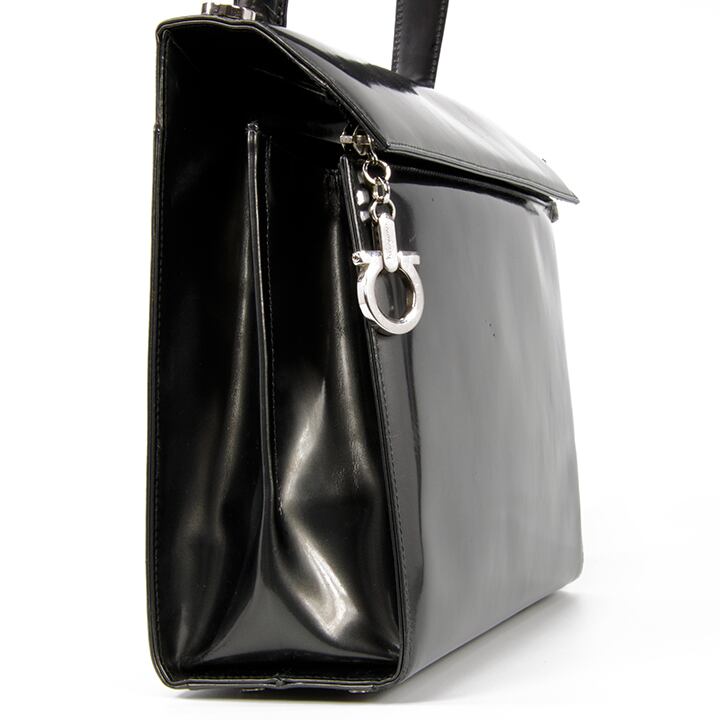 【本物・送料無料・良品】Ferragamo・フェラガモ・2WAYショルダーバッグ(ガンチーニ・人気・斜め掛け・レア・黒・ブラック・A693)