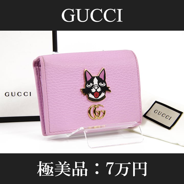 【本物・送料無料・極美品】GUCCI・グッチ・短財布・二つ折り財布(GGマーモント・ボスコ・人気・綺麗・犬・レア・ピンク・C105)