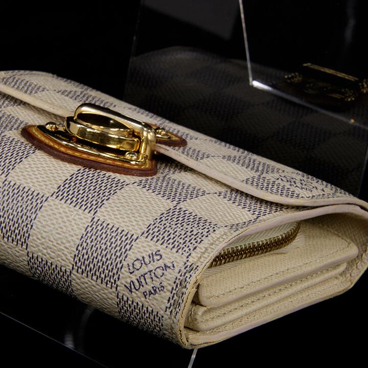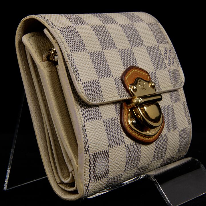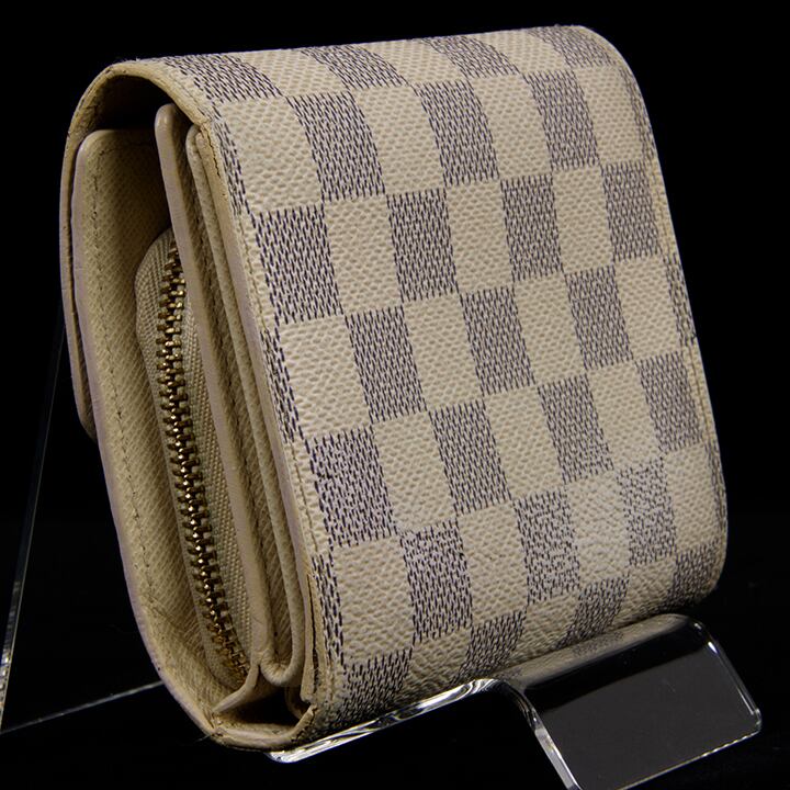 【本物・送料無料・良品】VUITTON・ヴィトン・短財布・三つ折り財布(アズール・コアラ・人気・コンパクト・白黒・大容量・G049)