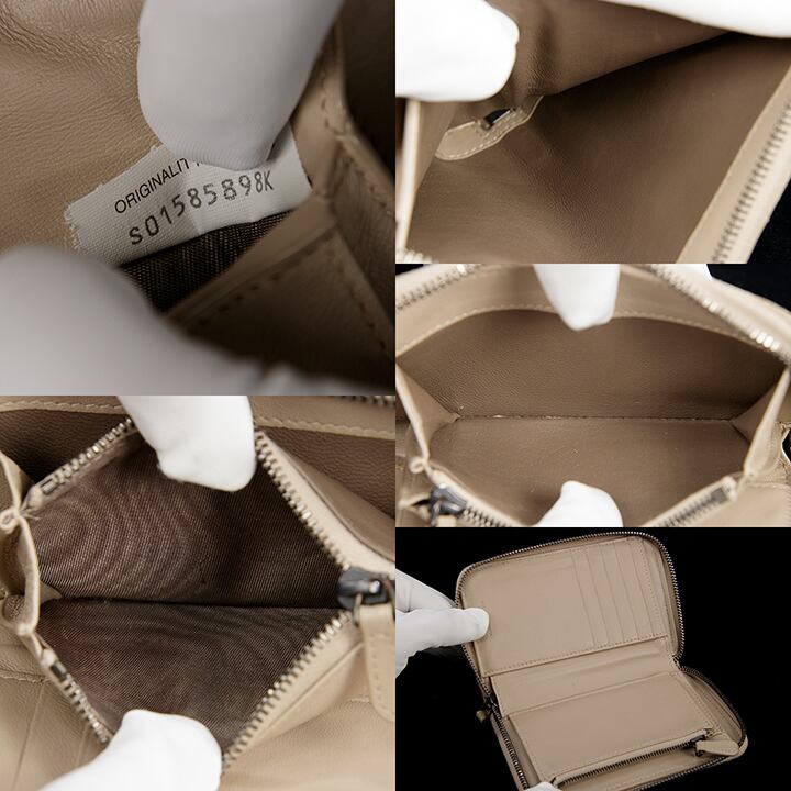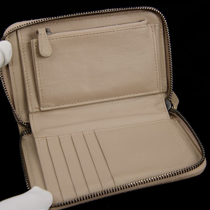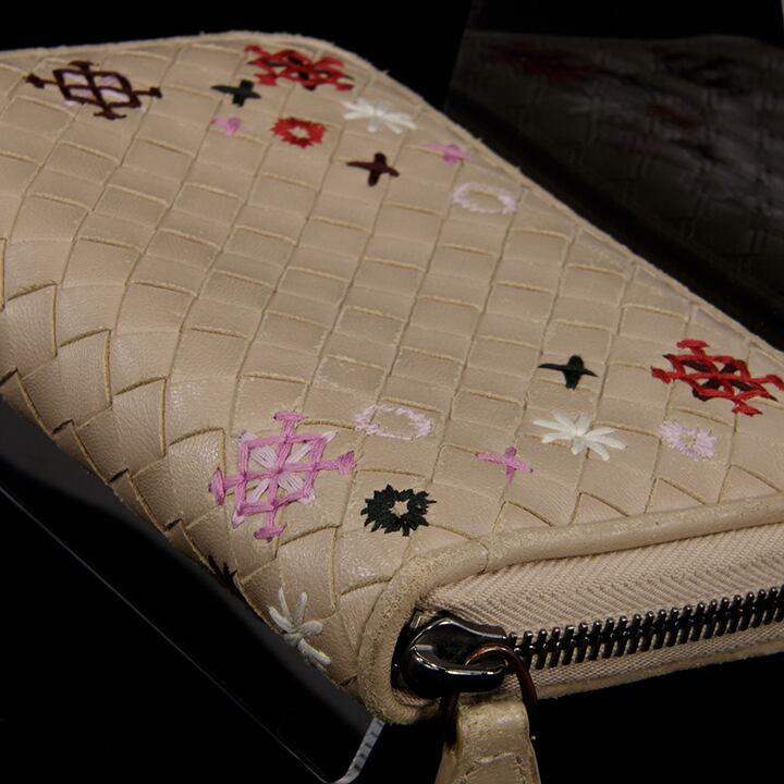 【本物・送料無料・良品】Bottega・ボッテガ・短財布・ラウンドファスナー(イントレチャート・人気・花柄・レア・ベージュ・C115)