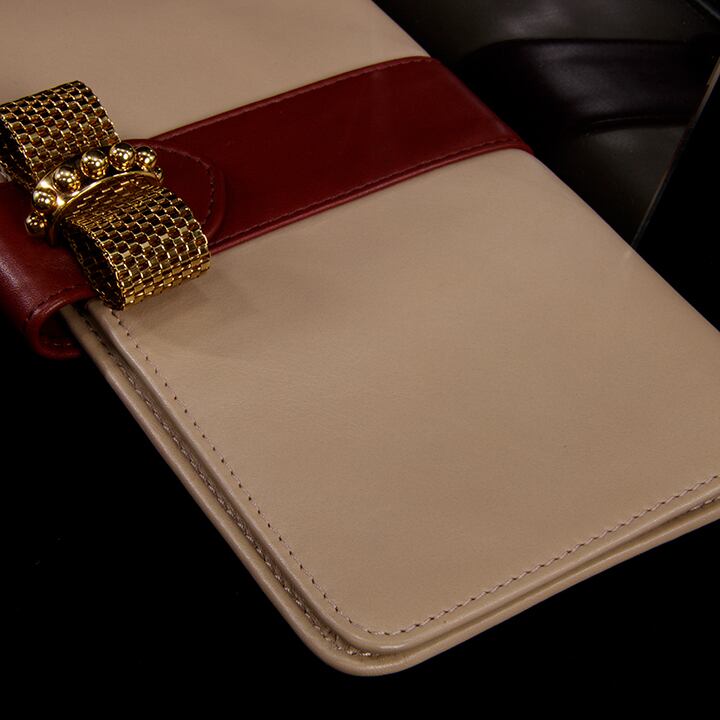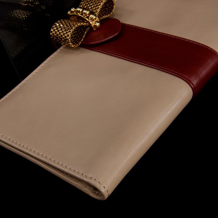 こちらのお財布は、フラップ部分の金具が特徴的な大変希少なモデルで、落ち着いた大人の美しさと、最高級ラムスキンならではの肌触りの良さ・使い心地の良さが感じられます。