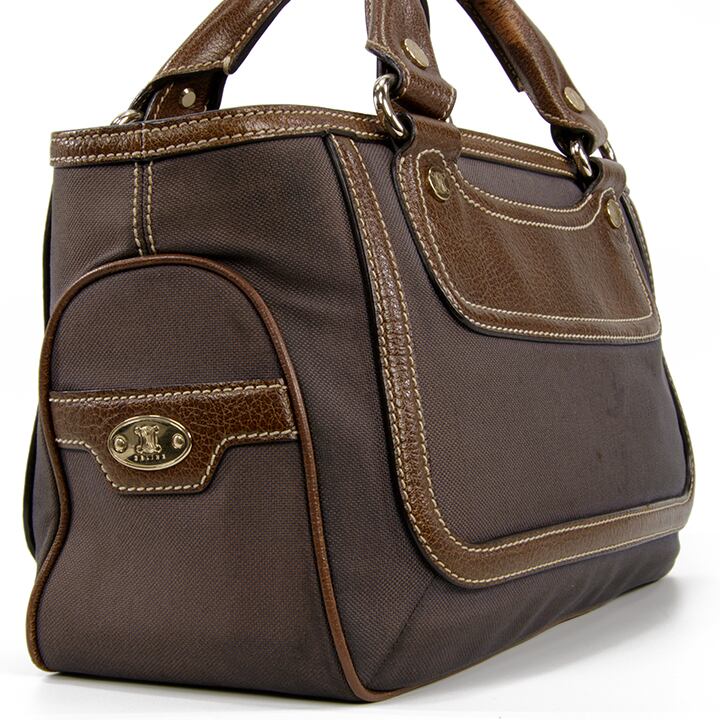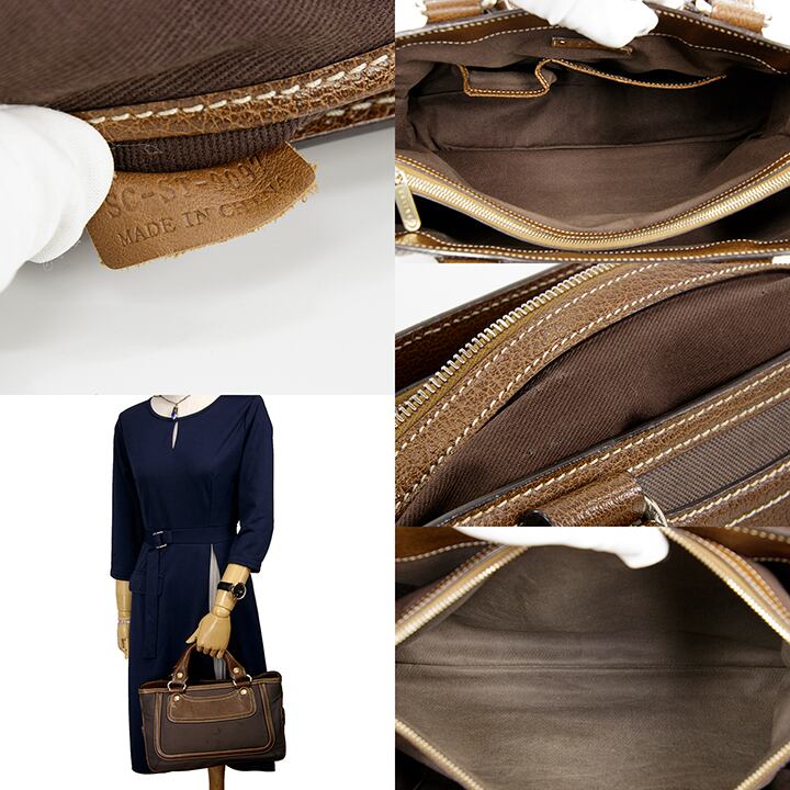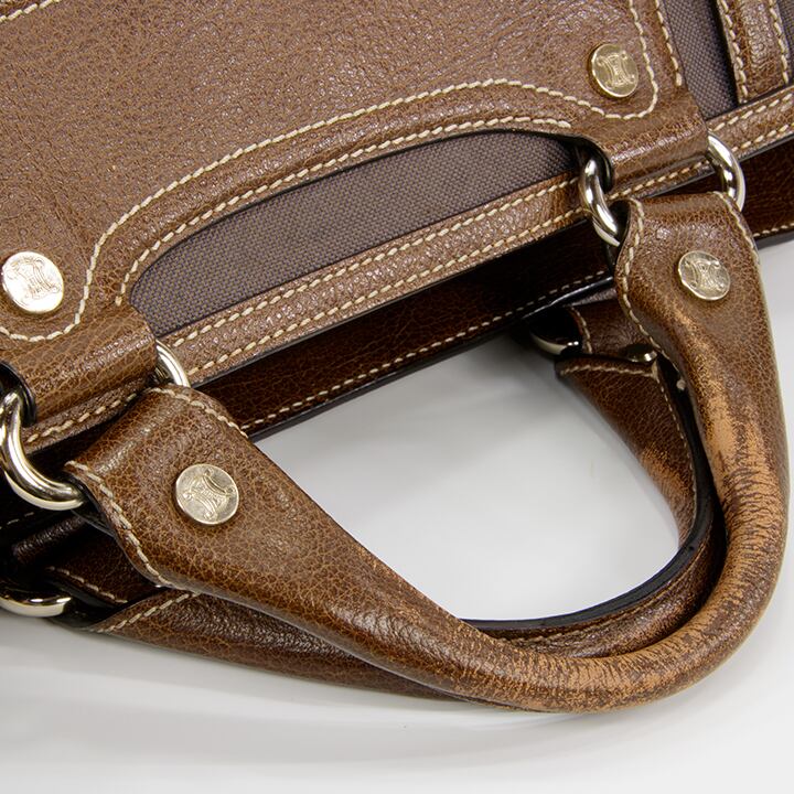 【本物・送料無料・外側は良品】CELINE・セリーヌ・ハンドバッグ(ブギーバッグ・レア・珍しい・ブラウン・グレー・バック・I049)