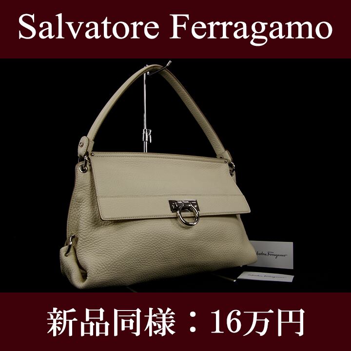 【本物・送料無料・新品同様】Ferragamo・フェラガモ・ショルダーバッグ(ガンチーニ・人気・綺麗・アイボリー・鞄・バック・I053)