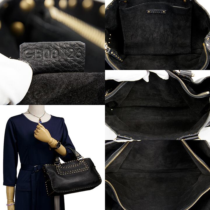 【本物・送料無料・美品】CELINE・セリーヌ・ハンドバッグ(ブギーバッグ・人気・綺麗・黒・ブラック・スタッズ・鞄・バック・E226)