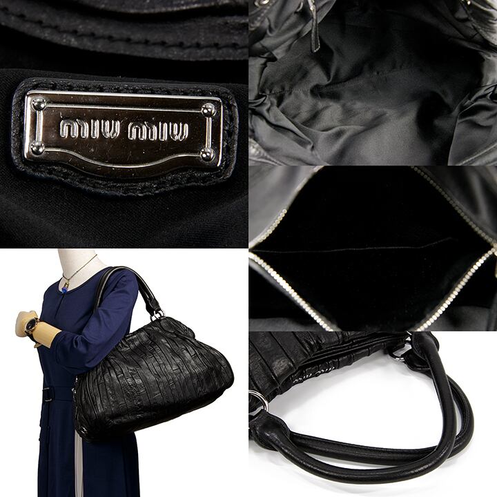 【本物・送料無料・美品】Miu Miu・ミュウミュウ・ハンドバッグ(人気・綺麗・高級・珍しい・黒・ブラック・鞄・バック・A709)