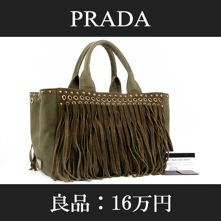 【本物・送料無料・良品】PRADA・プラダ・ハンドバッグ(カナパ・人気・高級・レア・珍しい・緑色・グリーン・鞄・バック・L014)